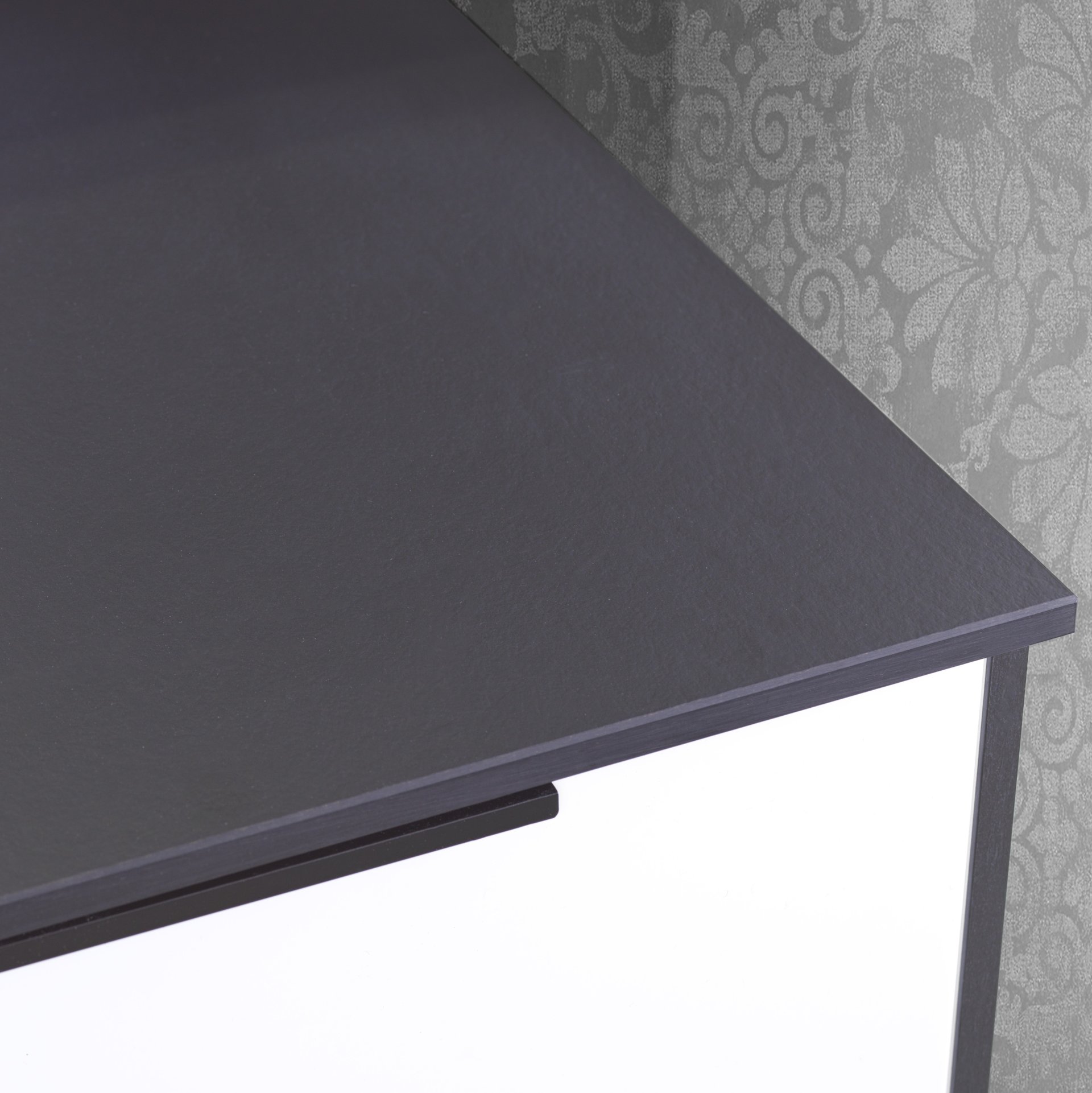 - Farbe/Design: Front - Weiß Hochglanz, Korpus - Weiß matt, Dekorkante Anthrazit