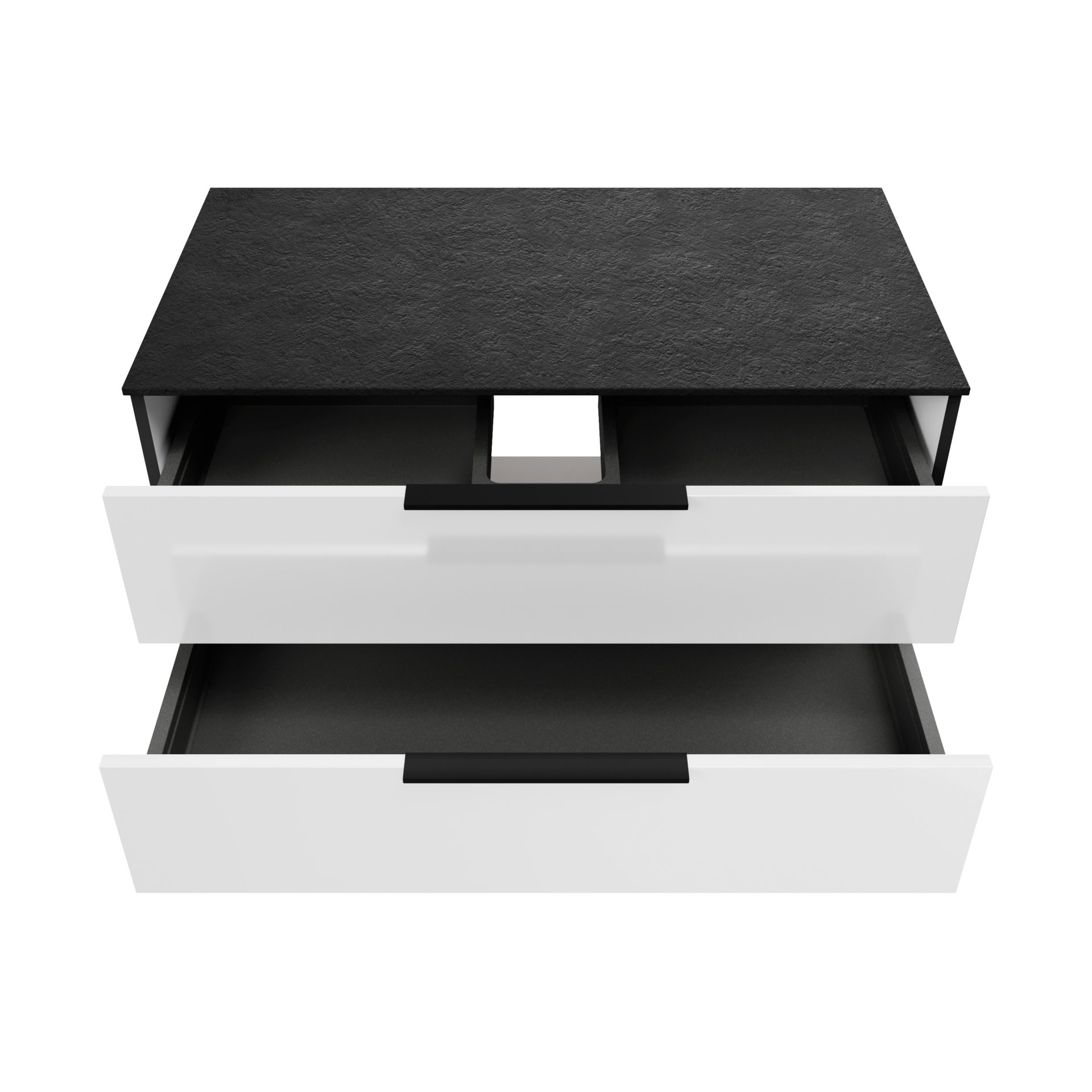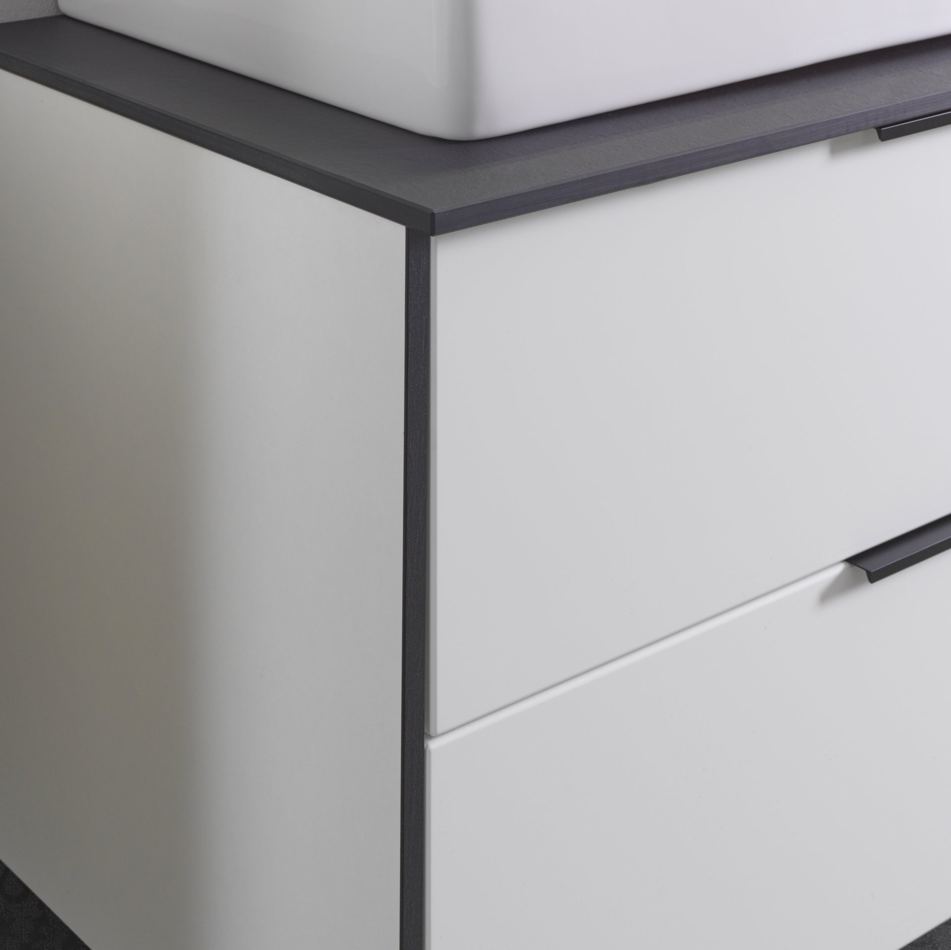 Fackelmann FLAIR Waschbeckenunterschrank 101 cm breit, Weiß/Anthrazit, Waschtischplatte Schwarz Schieferstruktur