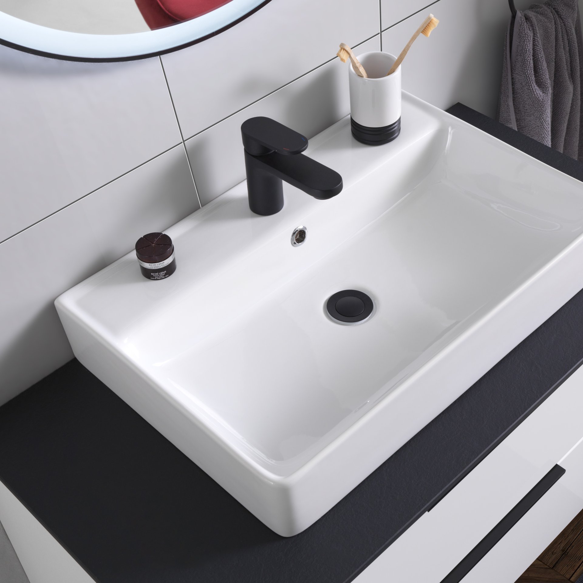 Wie wäre es, wenn Dein neues Bad Design, Stil und eine Prise Eleganz miteinander vereint? Dann ist das 2teilige Badzimmermöbel Set aus der Serie FLAIR von Fackelmann genau die richtige Wahl für Dich. Die Kombination aus Weiß/Schwarz und einer feinen Dekorkante in Anthrazit verleiht dem Badmöbel einen modernen, grafisch anmutenden Look. Auf dem 100 cm breiten Waschtischunterschrank befindet eine hochwertige Waschtischplatte in schwarzer Schieferstruktur. Sie zeichnet sich durch die angenehme, natürliche Haptik aus, ist kratzfest, hygienisch und optimal für Feuchträume geeignet. Die Waschtischplatte bietet Dir individuelle Freiräume für Aufsatzwaschbecken in unterschiedlichen Farben und Formen. Zwei Schubladen mit praktischer Soft-Close Funktion bieten reichlich Stauraum für Badaccessoires und all die anderen Dinge für Dein tägliches Pflegeritual. Das FACKELMANN FLAIR Waschbeckenunterschrank 101 cm breit, Weiß/Anthrazit Waschtischplatte Schwarz Schieferstruktur wird vormontiert geliefert und ist damit schnell in Deinem Badezimmer integriert. Badmöbel von Fackelmann werden mit viel Liebe zum Detail in Deutschland hergestellt und zeichnen sich durch ihre bewährte Qualität aus.