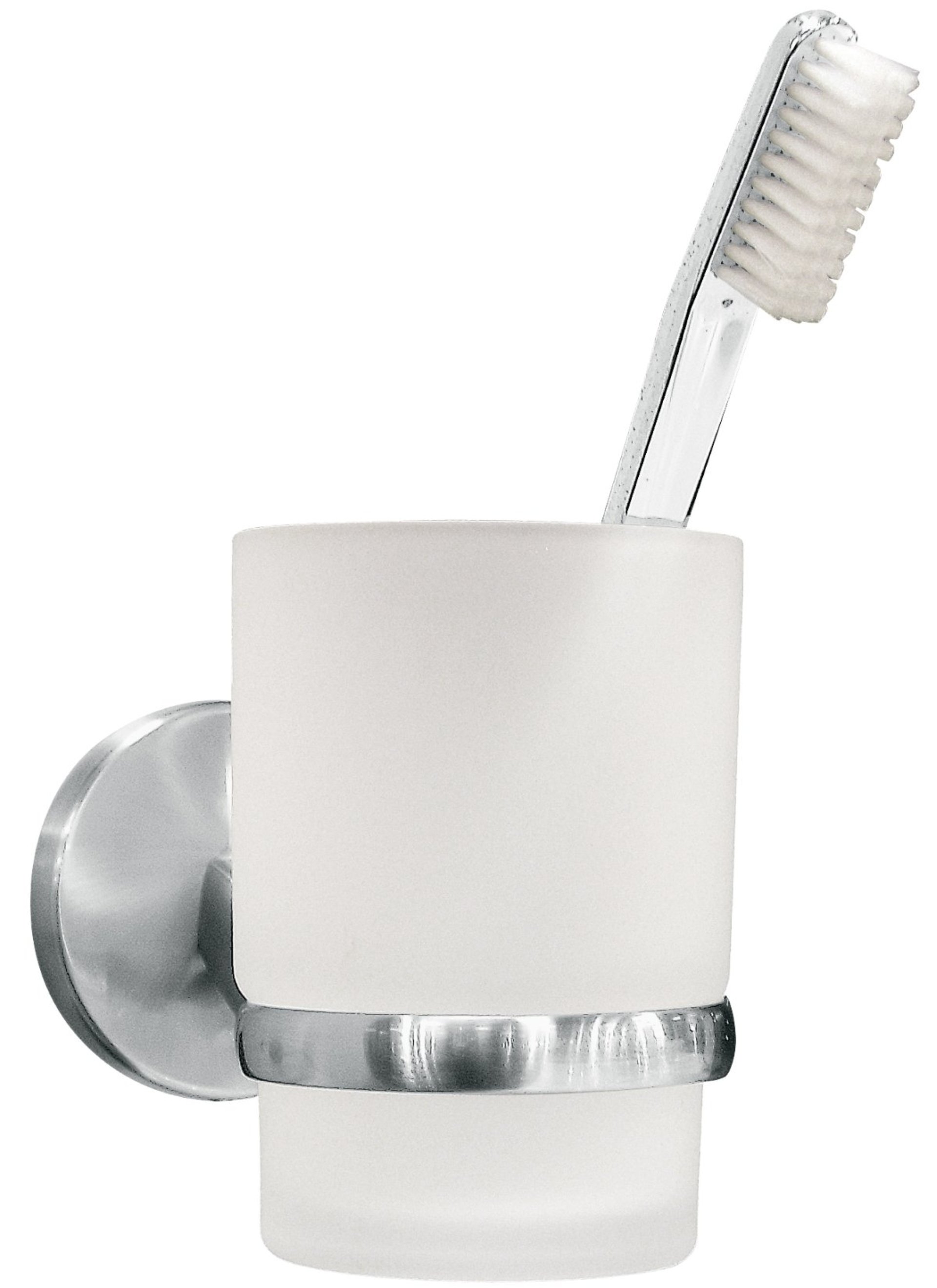 Die runde Wandbefestigung in gebürsteter Edelstahloptik zeichnet die Serie FUSION aus dem Hause Fackelmann aus. Auf Grund des zeitlosen Designs gelingt eine harmonische Integration in jedes Badezimmer. Mit dem Glas mit Halter aus der Serie FUSION von Fackelmann ist Deine Zahnbürste oder Dein Schmuck immer ordentlich aufgeräumt. Zum reinigen kannst Du das Glas einfach aus der Halterung nehmen und unter fließendem Wasser säubern. Kinderleicht gestaltet sich die Montage. Entweder mit dem integrierten Befestigungsmaterial durch Bohren an der Wand befestigen oder mit dem Superkleber von Fackelmann (Art.Nr. 86777) an glatte Oberflächen in Deinem Bad kleben. Der Kleber ist rückstandslos entfernbar. Verleihe Deinem Badezimmer mit dem Fackelmann FUSION Glas mit Halter, Edelstahloptik einen Hauch von Luxus und Eleganz.