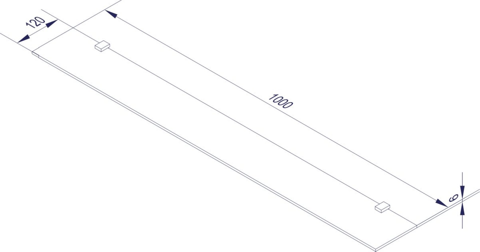 - Maße: 100 cm Breite, 12 cm Tiefe, Glasstärke 6 mm