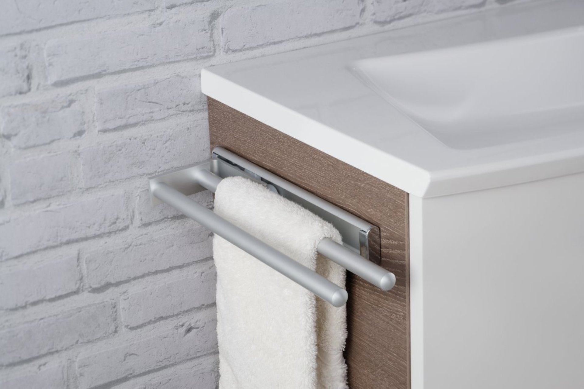 Entdecke die clevere Lösung zum Aufhängen von Handtüchern für Dein Badezimmer mit dem Handtuchhalter für den Waschtisch seitlich. Der Fackelmann Handtuchhalter im Bad mit Auszug vereint perfekt Funktionalität und Stil. Dieser zweiarmige Handtuchhalter für das Bad mit einer Länge von 31 cm lässt sich nach vorn ausziehen. Damit kannst Du Dein Handtuch bequem aufhängen und benutzen. Dieser Handtuchhalter für Badmöbel ist besonders praktisch und gleichzeitig platzsparend. Also auch für kleine Bäder oder Gäste WC's hervorragend geeignet. Auf Grund seiner Materialeigenschaften garantiert der Handtuchhalter für den Waschtischunterschrank eine lange Lebensdauer. Der Fackelmann Handtuchhalter zweiarmig, Aluminium, Badmöbelmontage wird mit Befestigungsmaterial geliefert.