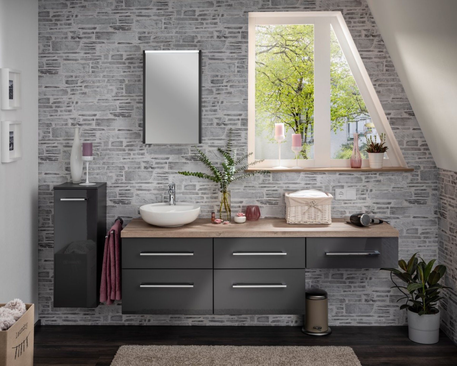 Die Serie HYPE 3.0 von Fackelmann bietet viele individuelle Gestaltungsmöglichkeiten mit Waschtischunterschränken in den Breiten 60 cm und 80 cm und Waschtischplatten in Millimeter genauem Zuschnitt. Der Fackelmann HYPE 3.0 Waschtisch Unterbauschrank 60 cm, Anthrazit mit einer Schublade eignet sich für Gäste WC's ebenso wie für barrierefreie Bäder. Er bietet zusätzlichen Stauraum für Deine Badaccessoires. Anthrazit gehört zu den aktuellen Trendfarben im Badezimmer. Die anthrazit farbige Schublade ist voll auszugsfähig und lässt sich durch das moderne Soft-Close-System nahezu lautlos schließen. Der hochwertige, chromglänzende Griff auf der hochglänzenden Front in Anthrazit wirkt sehr edel und unterstreicht die Wertigkeit des Badmöbels. Auf Grund seines Aufbaus kannst Du den Unterschrank für zusätzlichen Stauraum unter der Waschtischplatte verwenden. So erhält das Waschbecken einen separaten Auftritt und unterstreicht die Individualität Deines Bades. Mit viel Liebe zum Detail werden Badmöbel von Fackelmann in Deutschland hergestellt. Eine leicht verständliche Anleitung hilft Dir beim Aufbau des Unterbauschranks.