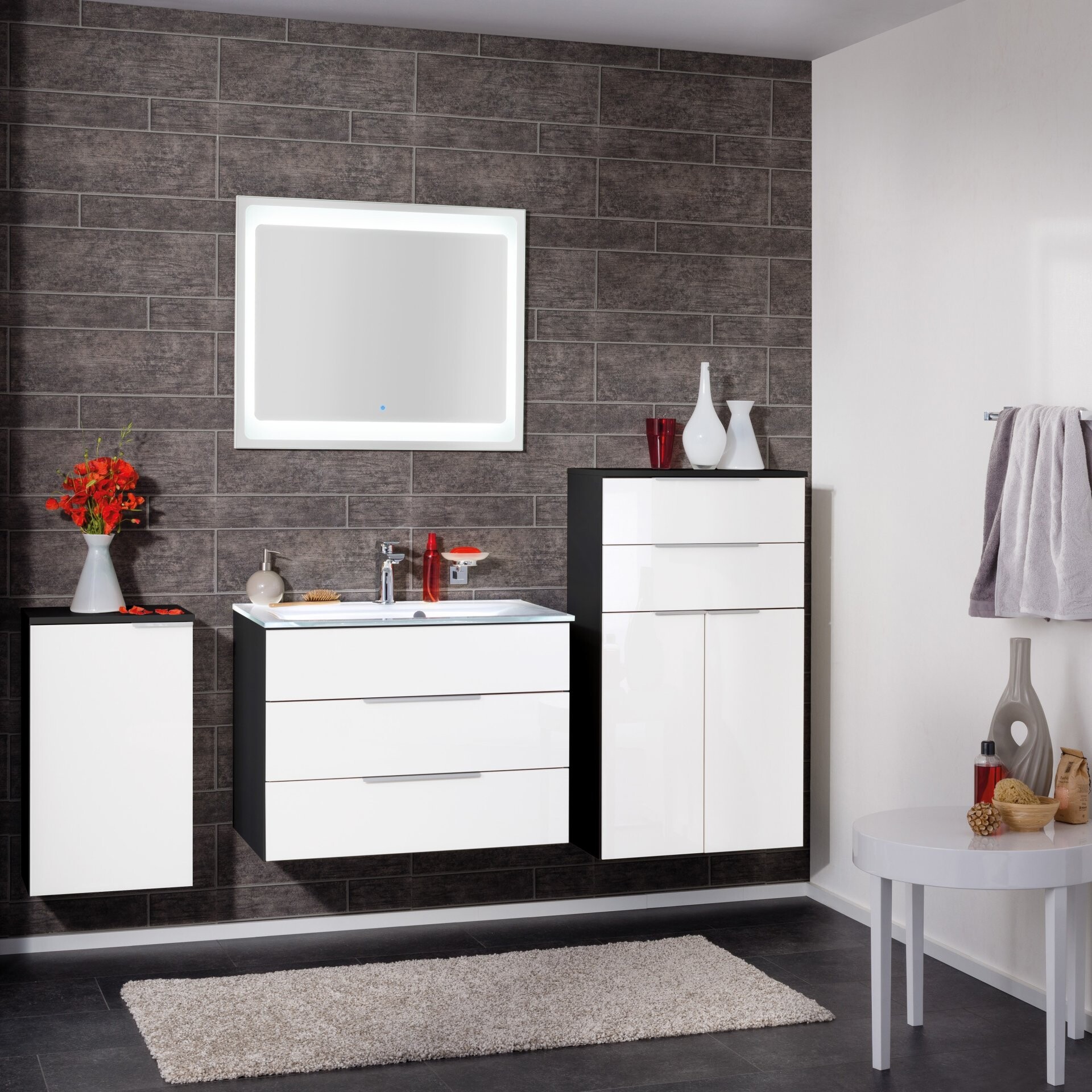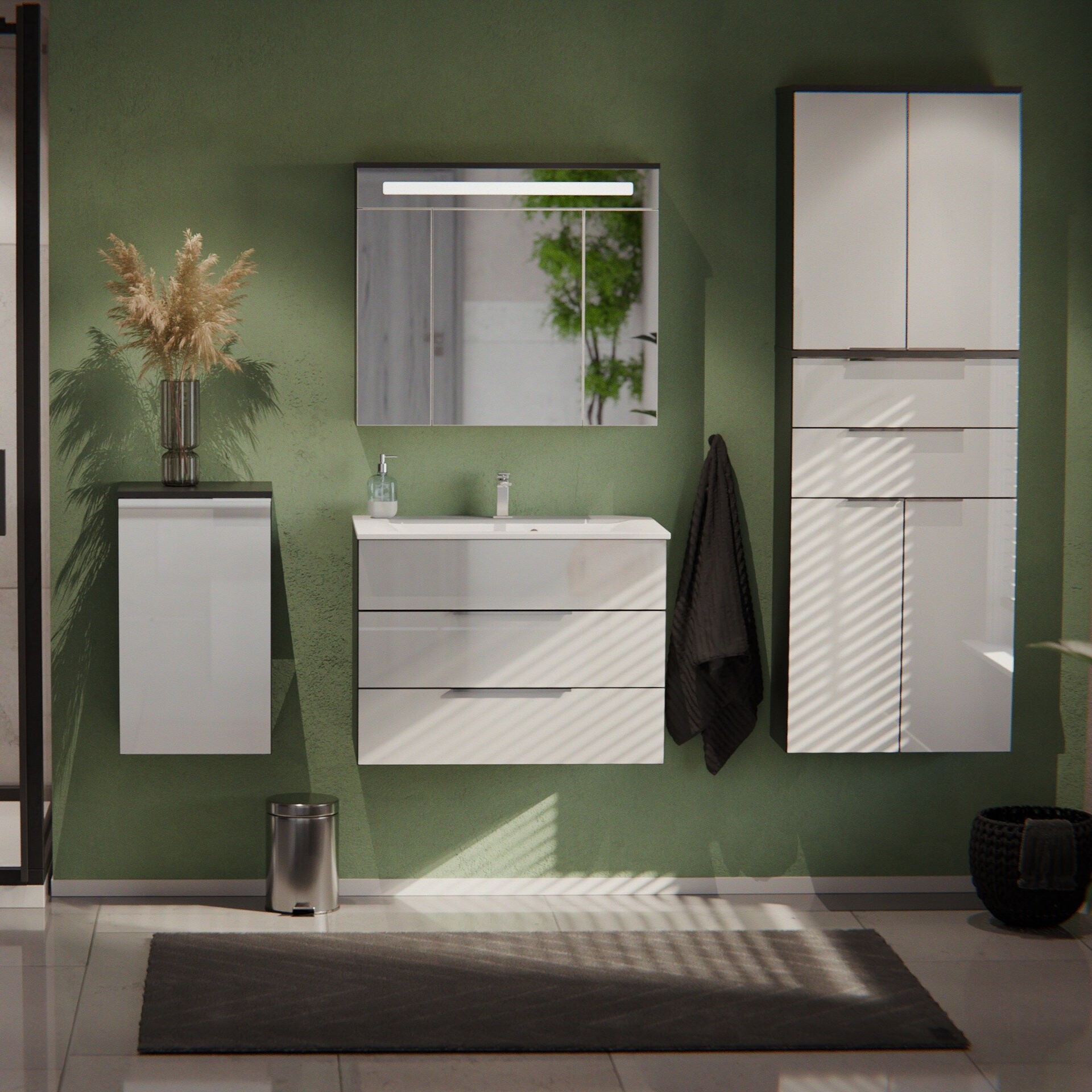Fackelmann Kara Badmöbel Set 2-teilig 80 cm, Anthrazit/Weiß, Glas weiß, 2 Schubladen