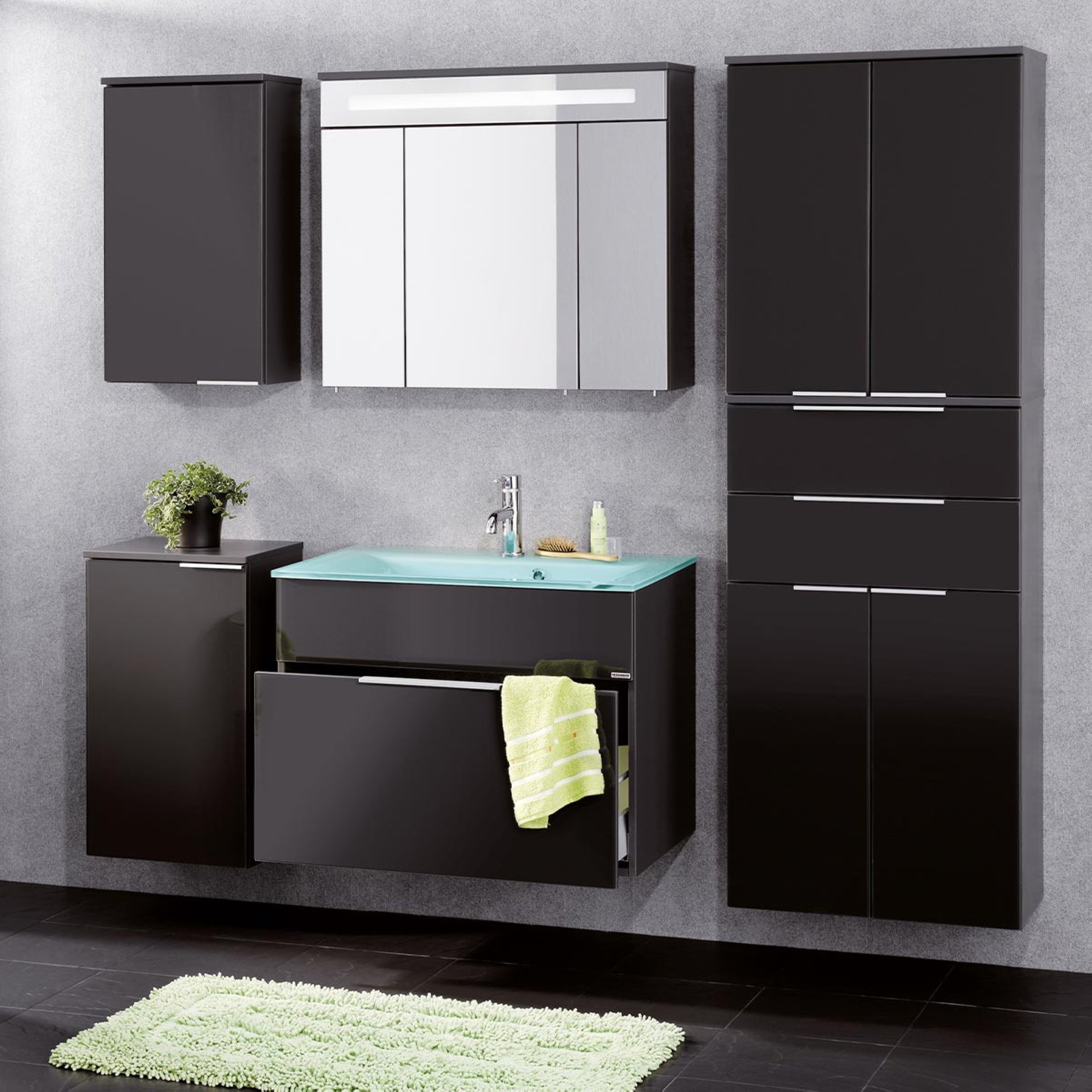 Fackelmann KARA Badmöbel Set 2-teilig 80cm, Anthrazit, Glas Mint, 1 Schublade