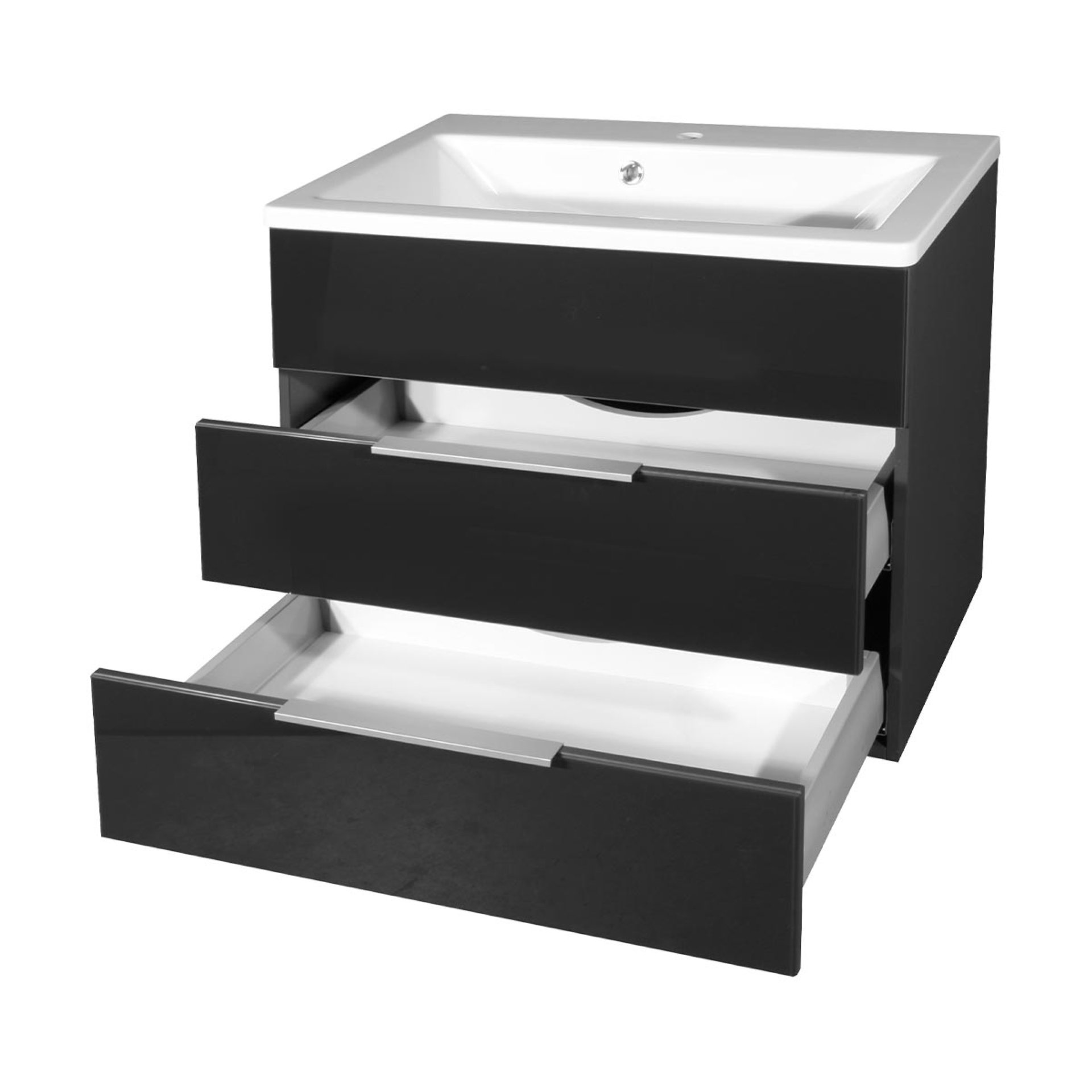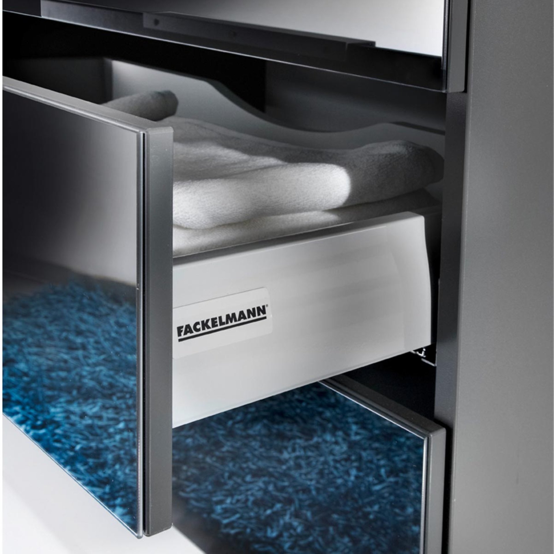 Unvergleichlich elegant. Jeden Morgen! Mit dem zweiteiligen Badmöbel Set aus der Serie KARA von Fackelmann erfreust Du Dich jeden Tag aufs Neue. Eine exklusive Front aus schwarzem Glas beeindruckt Dich bei jedem Gang ins Badezimmer. Gebürstete Aluminiumgriffe unterstreichen die Hochwertigkeit des Waschtischunterschranks. Beide Schubladen lassen sich mit dem Soft-Close System sanft schließen. Das moderne Badmöbel bietet ausreichend Stauraum für Deine Badaccessoires und sorgt mit dem Schubkasteneinsatz (Art.Nr. 90290) für eine aufgeräumte Schublade. Das weiße Waschbecken aus Gussmarmor überzeugt durch eine tiefe Waschmulde. Wasserspritzer bleiben da, wo sie hingehören. Mit viel Liebe zum Detail werden die Möbel in Deutschland herstellt. Das Fackelmann KARA Badmöbel Set 2-teilig 80cm, Anthrazit, Gussmarmor, 2 Schubladen ist vormontiert und damit kannst Du es schnell und einfach in Deinem Badezimmer aufstellen.