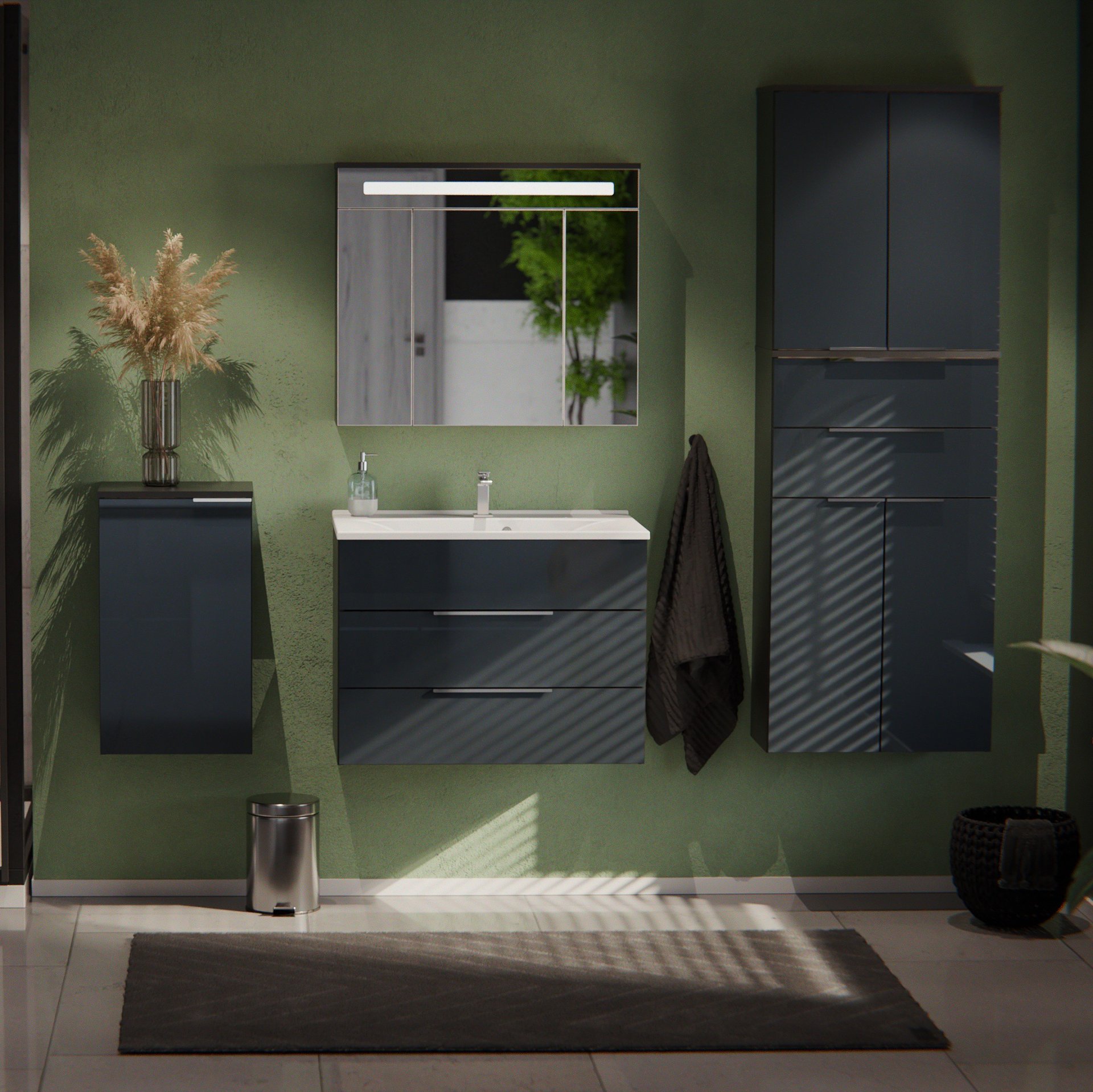 Fackelmann KARA Badmöbel Set 2-teilig 80cm, Anthrazit, Gussmarmor, 2 Schubladen
