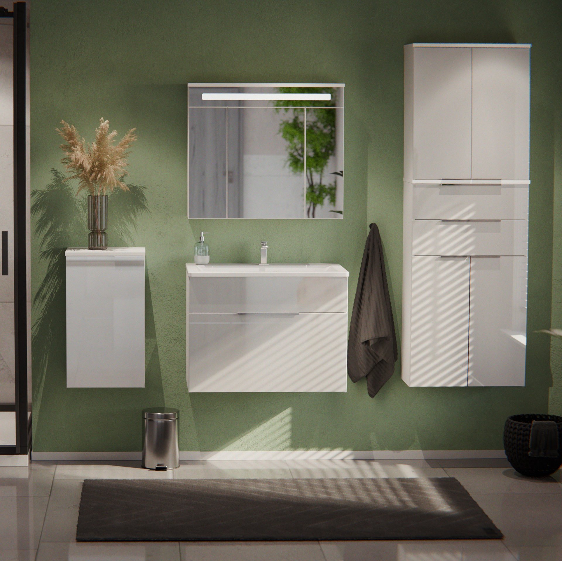 Fackelmann KARA Badmöbel Set 2-teilig 80cm, Weiß, Gussmarmor, 1 Schublade