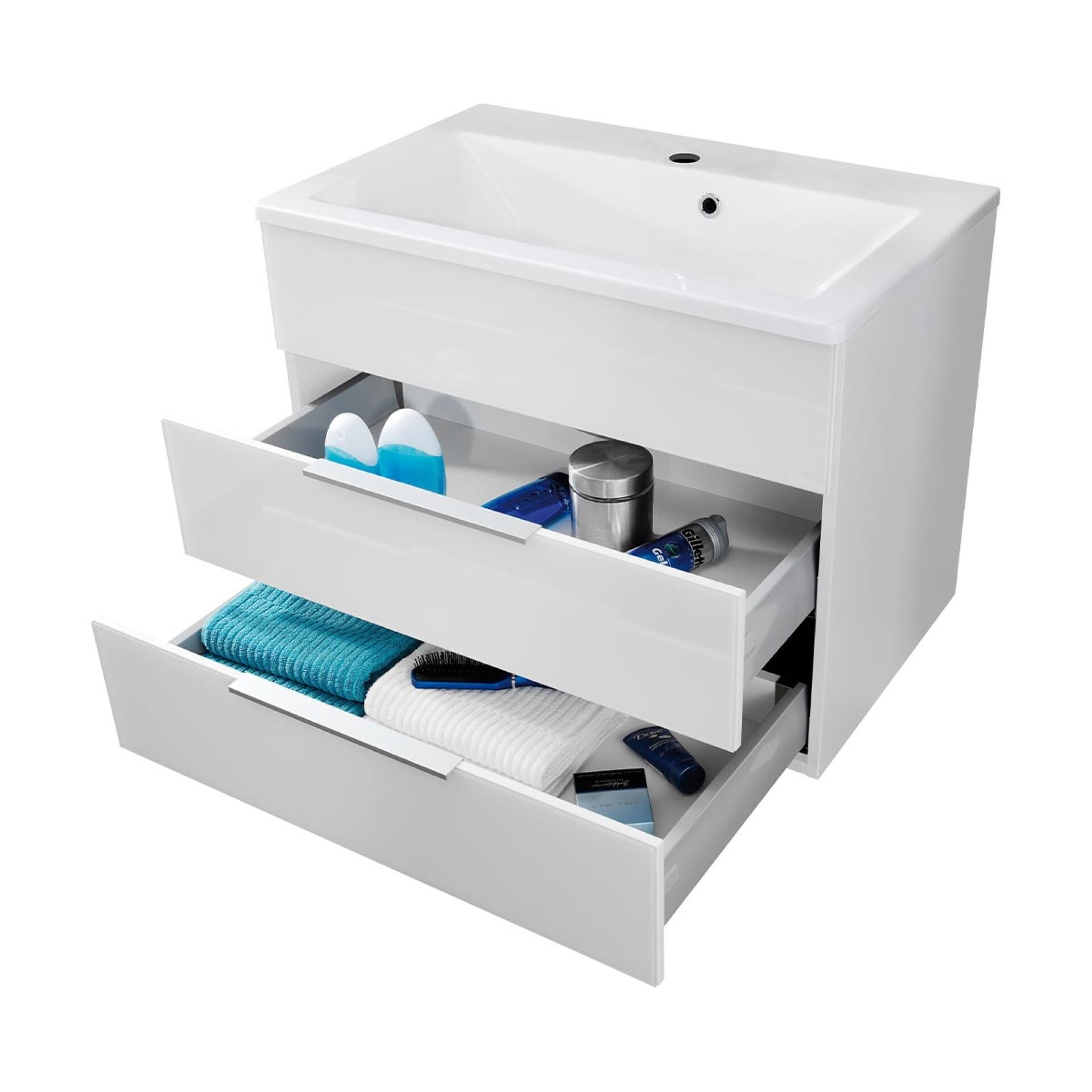 Fackelmann KARA Badmöbel Set 2-teilig 80cm, Weiß, Gussmarmor, 2 Schubladen
