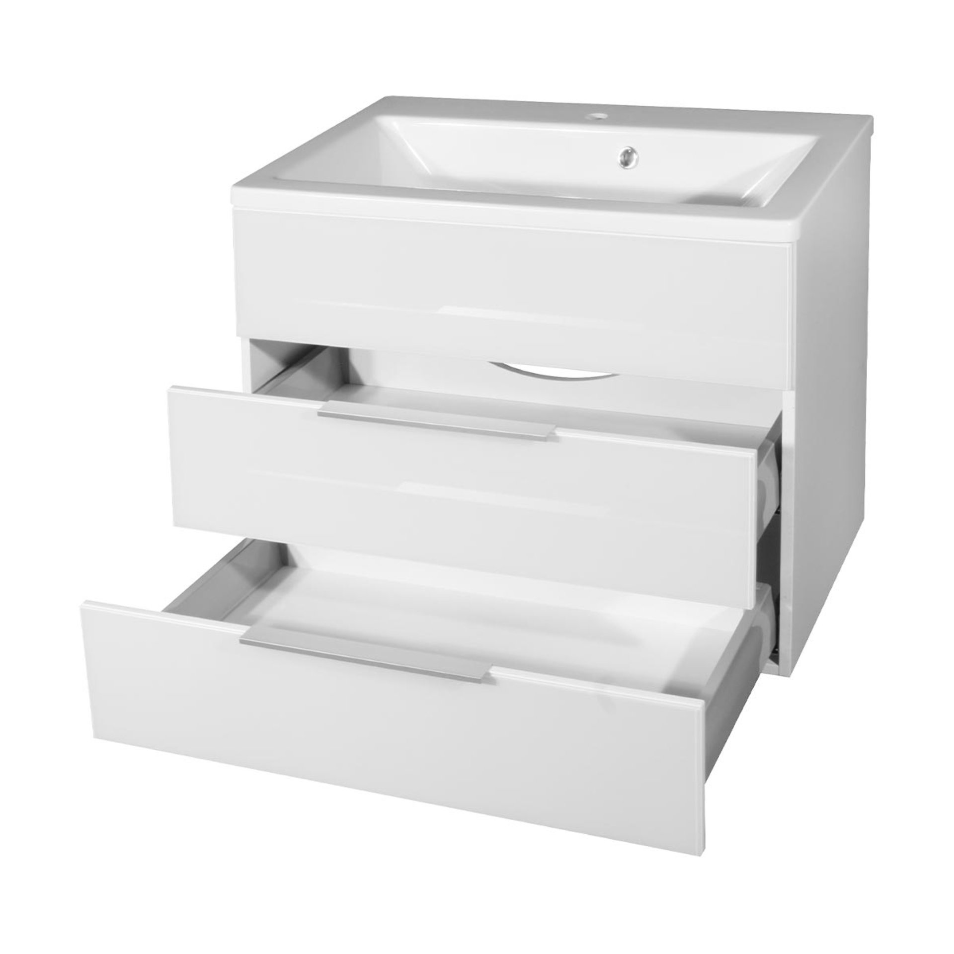 - Ausstattung: 2 Schubladen mit Soft-Close-System, 2 Griffleisten Aluminium gebürstet, Raumsparsiphon inklusive für volle Ausnutzung der oberen Schublade