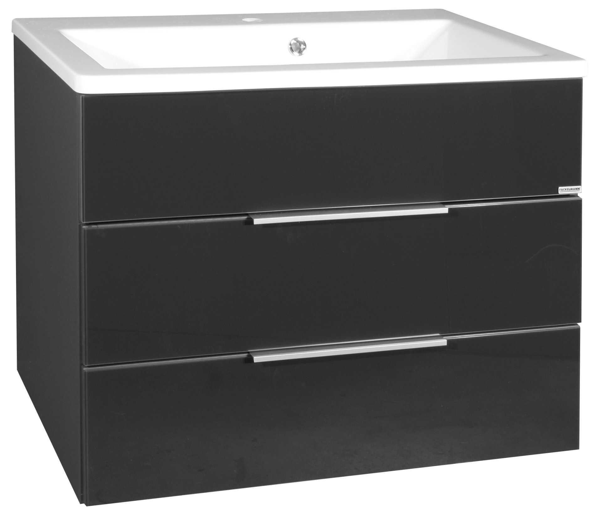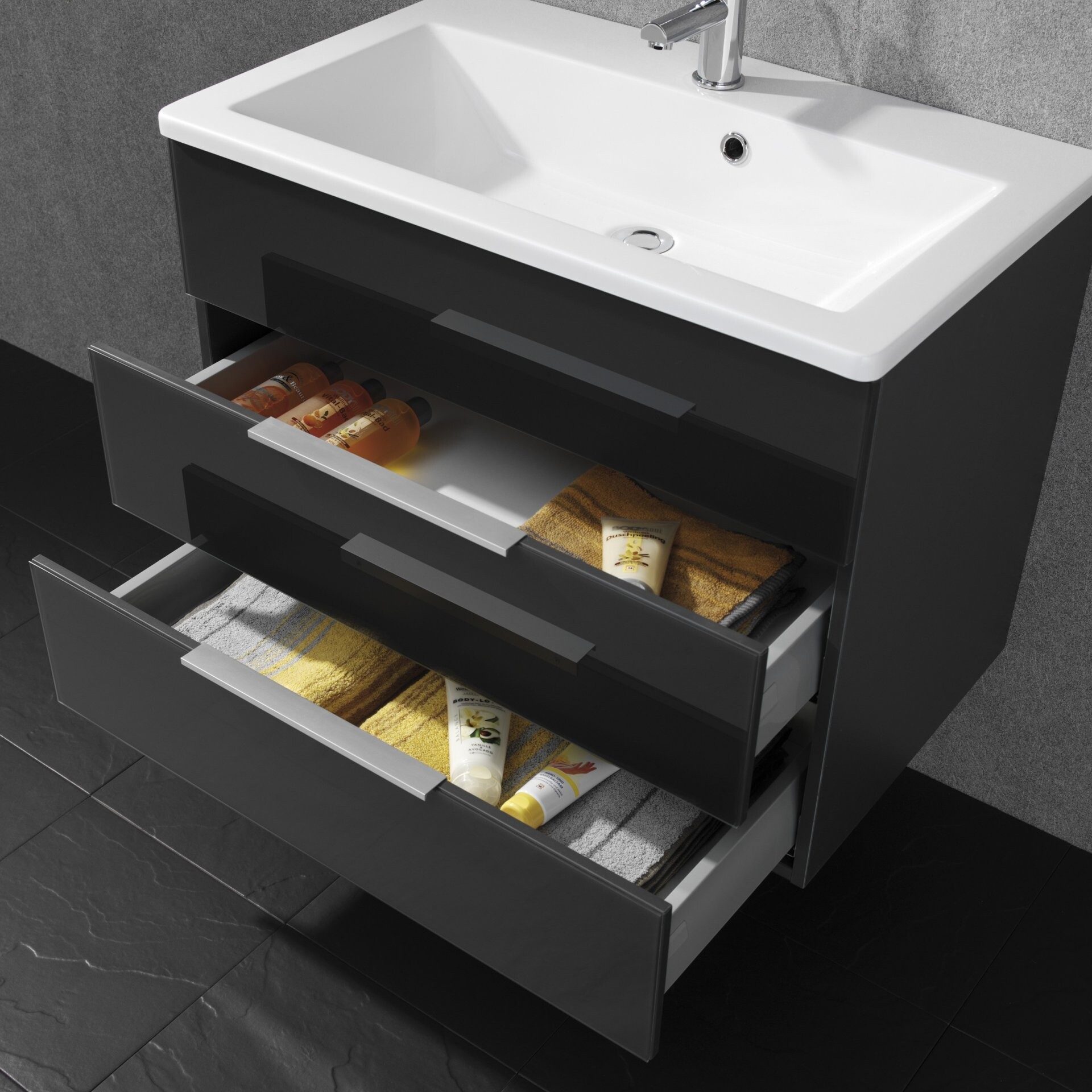 Fackelmann Kara Badmöbel Set 3-teilig 80 cm, Anthrazit, Gussmarmor, 2 Schubladen
