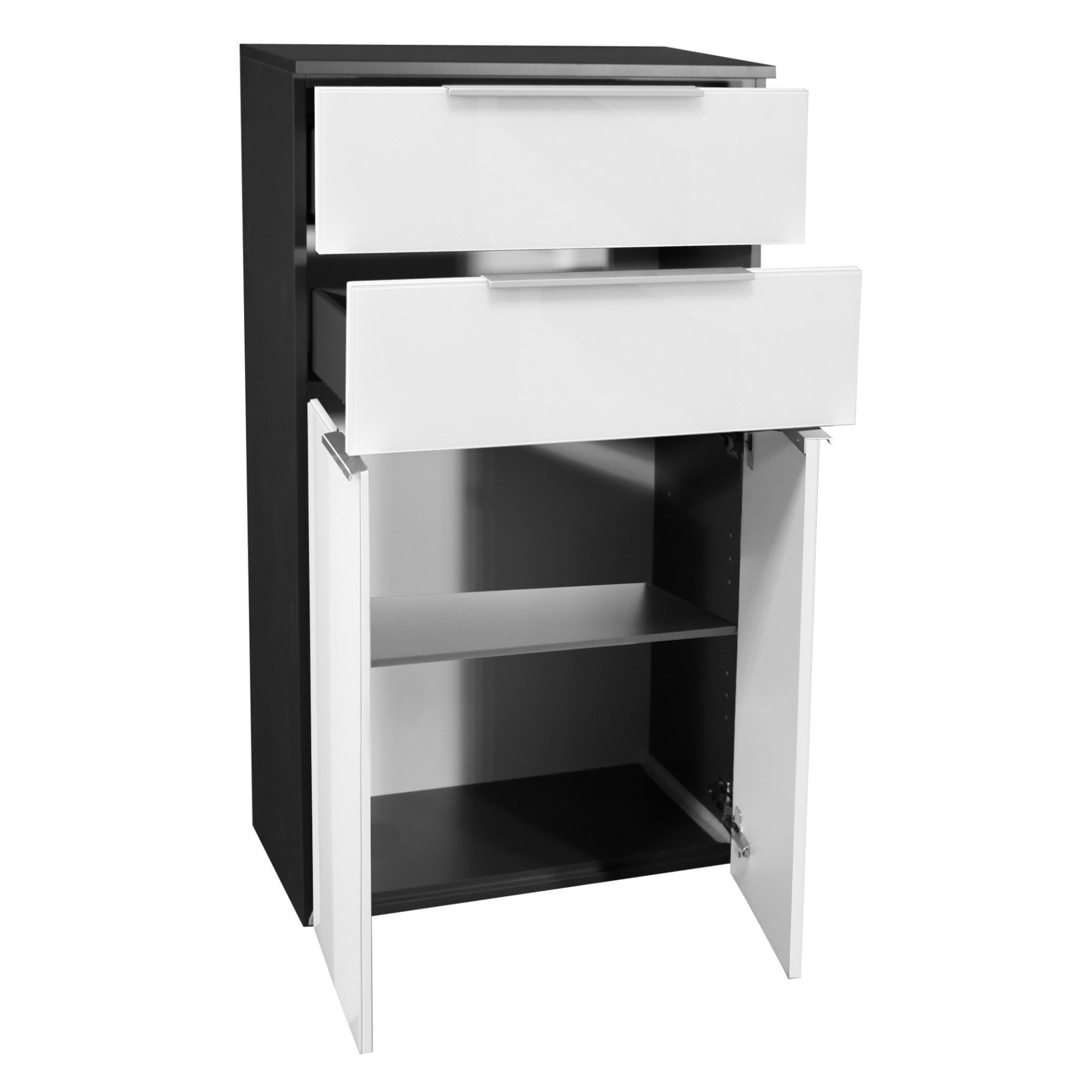 Fackelmann KARA Doppel Midischrank 61 cm breit, Weiß/Anthrazit, mit 2 Schubladen