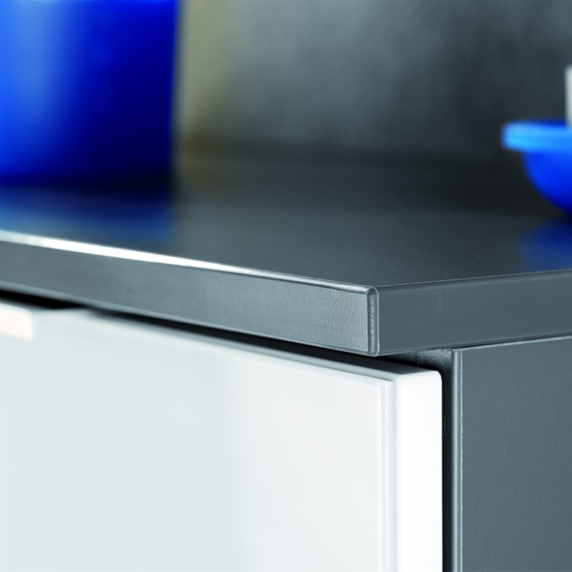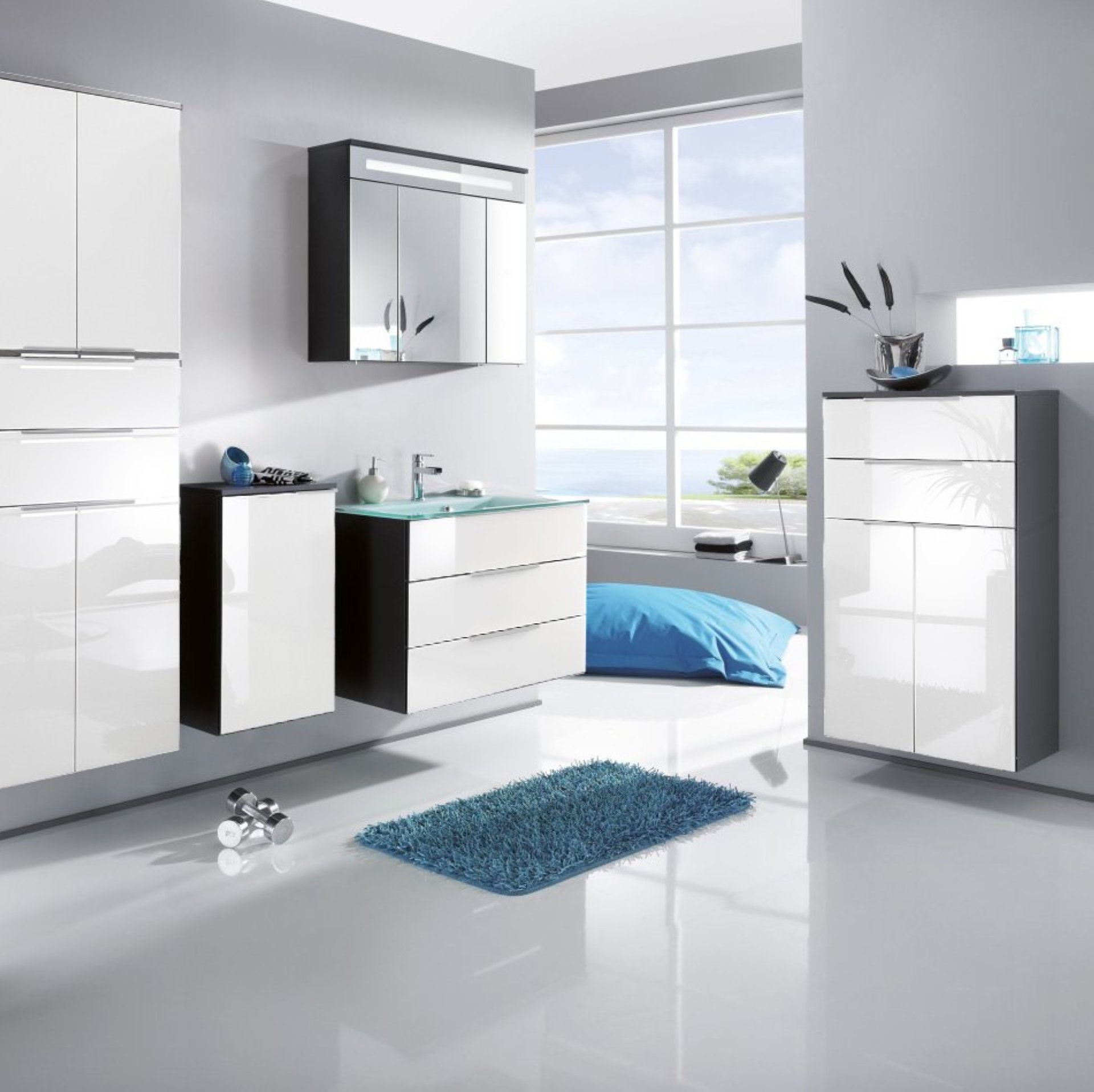 - Design: Korpus Anthrazit, Front lackiertes Glas Weiß