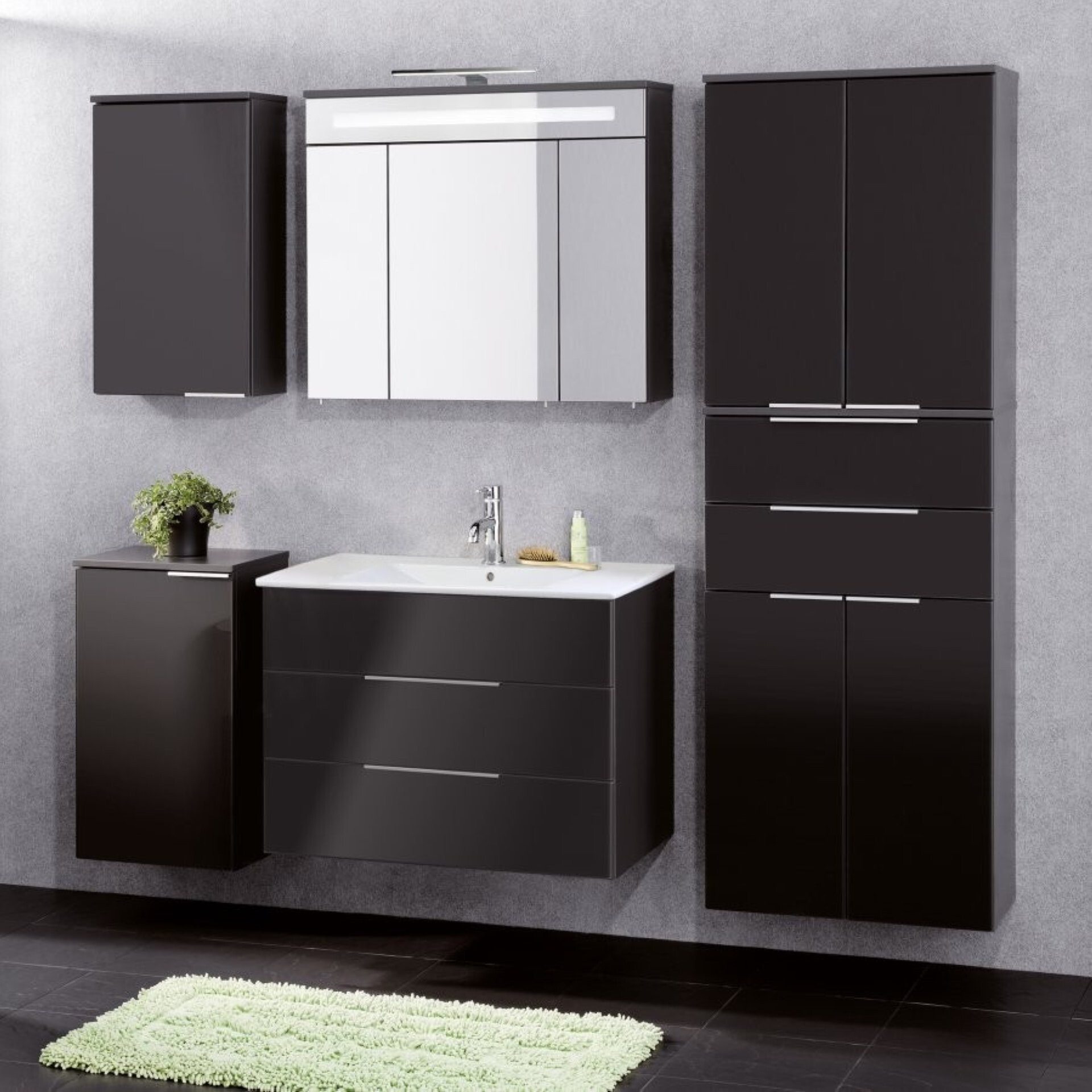 Der moderne Fackelmann Hängeschrank mit lackierter Glasfront und linkem Türanschlag in Schwarz/Anthrazit aus der Serie KARA von Fackelmann eignet sich hervorragend als Ergänzung im Gäste WC oder in größeren Bädern, um zusätzlichen Stauraum zu schaffen. Den Hängeschrank kannst Du links oder rechts neben Deinem Spiegelschrank oder Spiegel platzieren. Mit zwei Einlegeböden ist der Schrank gut unterteilt und schafft Platz für Deine Badeaccessoires sowie Handtücher. So ist Dein Bad immer ordentlich aufgeräumt. Gedämpfte Scharniere gestatten ein sanftes Schließen der Tür. Hängeschränke aus der Serie KARA fürs Badezimmer bietet der Hersteller Fackelmann in unterschiedlichen Kombinationen in Weiß und Anthrazit bei Korpus und Front an. Badmöbel von Fackelmann werden mit viel Liebe zum Detail in Deutschland hergestellt. Der Fackelmann KARA Hängeschrank 40 cm, Schwarz/Anthrazit, links ist vormontiert und kann so schnell und einfach in Deinem Badezimmer einziehen.