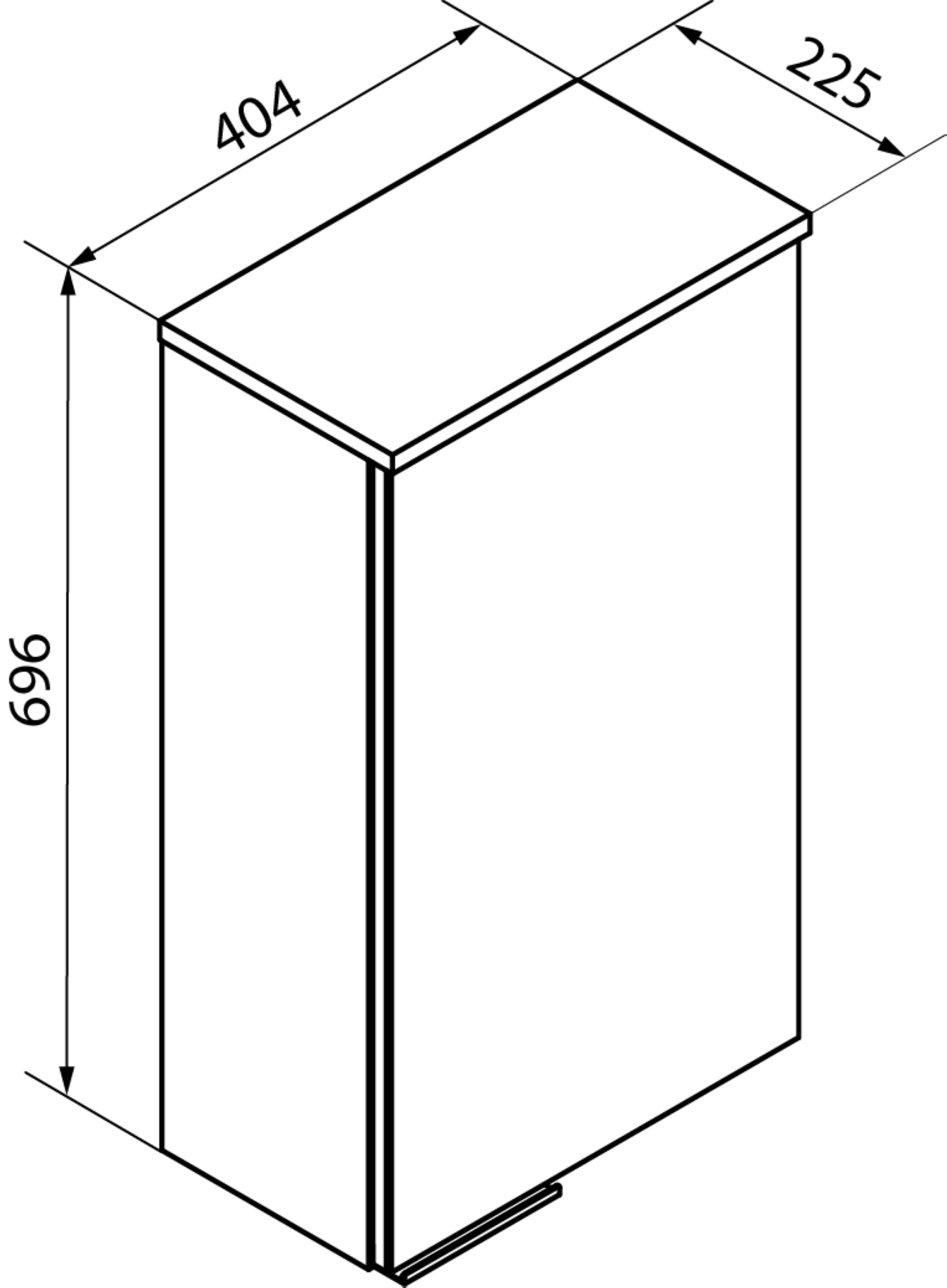 - Ausstattung: 1 Tür, 2 Einlegeböden, gedämpfte Scharniere, 1 Griff Aluminium Optik
