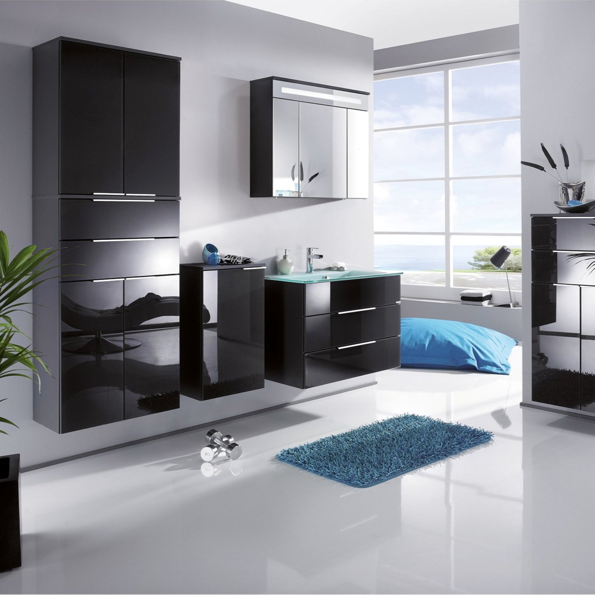 - Ausstattung: energiesparende LED-Leuchte 7,35 Watt, 3 Türen, 6 Glaseinlegeböden, E-Box mit Steckdose und Schalter