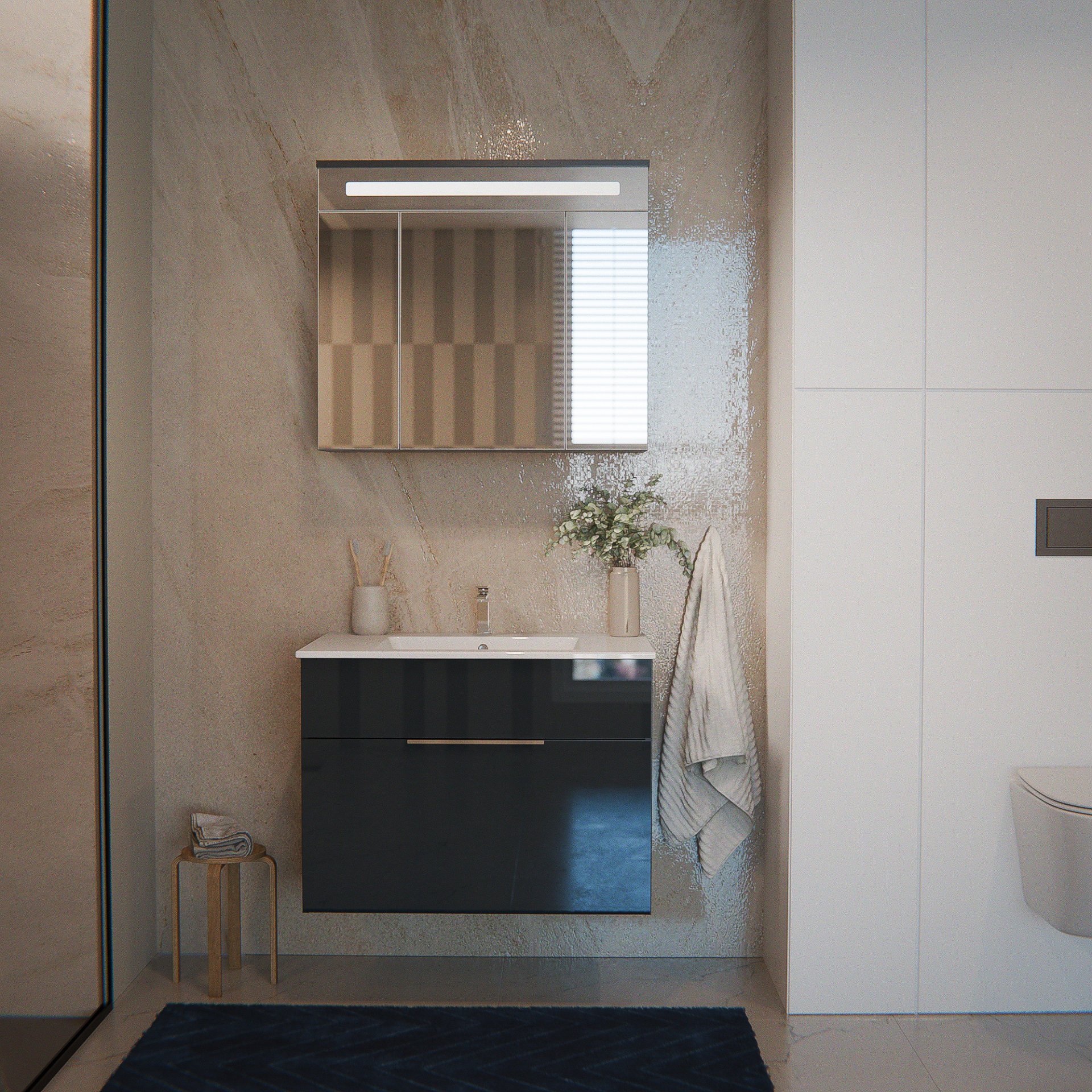 - Besonderheit: Spiegel mit 3D-Effekt, gedämpfte Scharniere