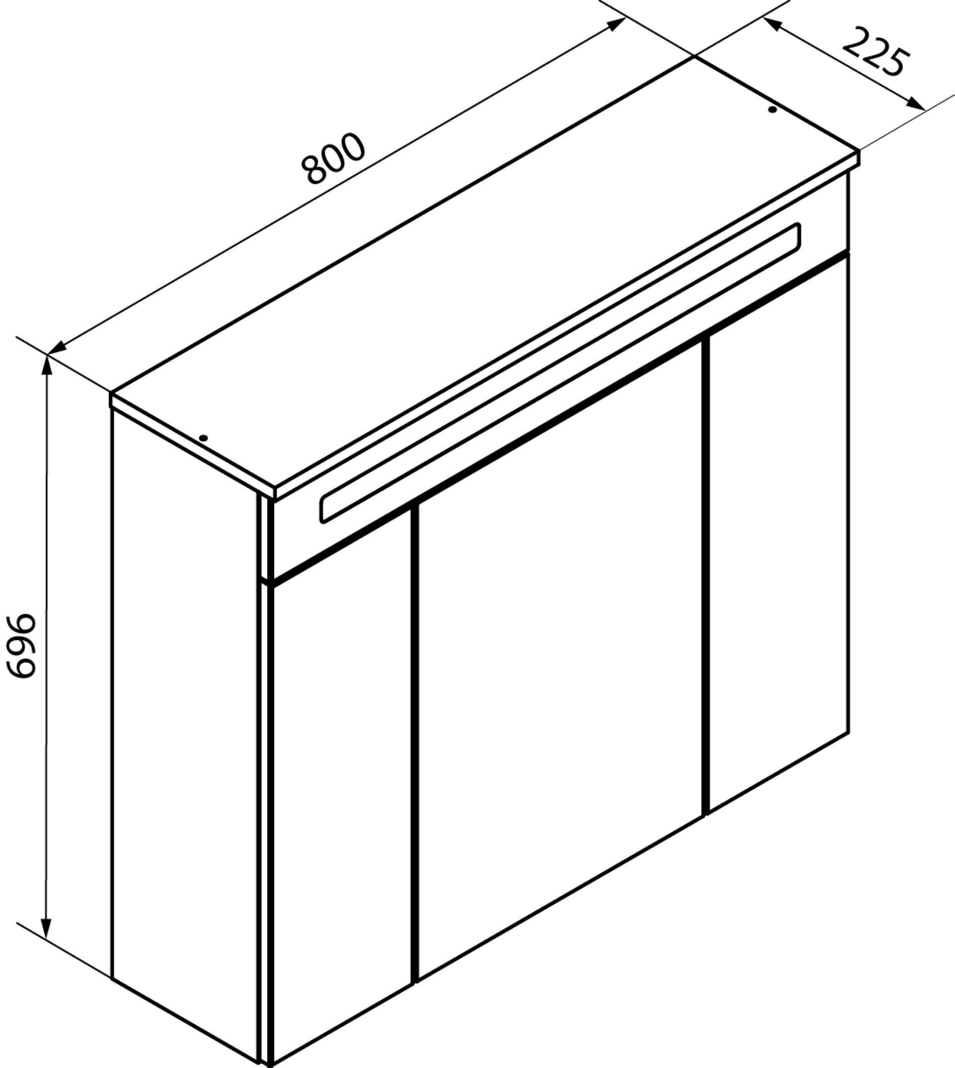 - Maße: 80 cm Breite, 69,6 cm Höhe und 22,5 cm Tiefe