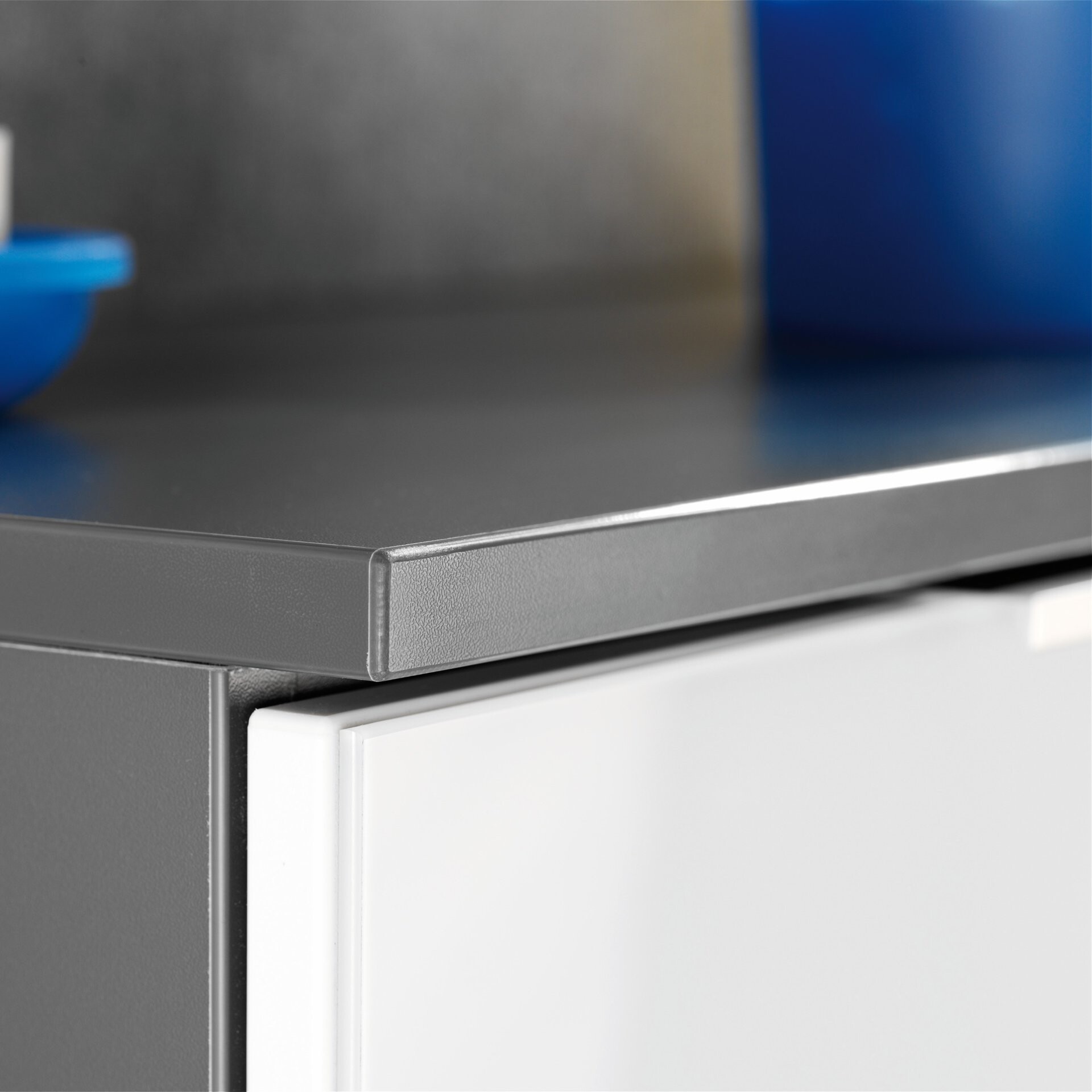 - Farbe: Korpus Anthrazit, Front lackiertes Glas Weiß