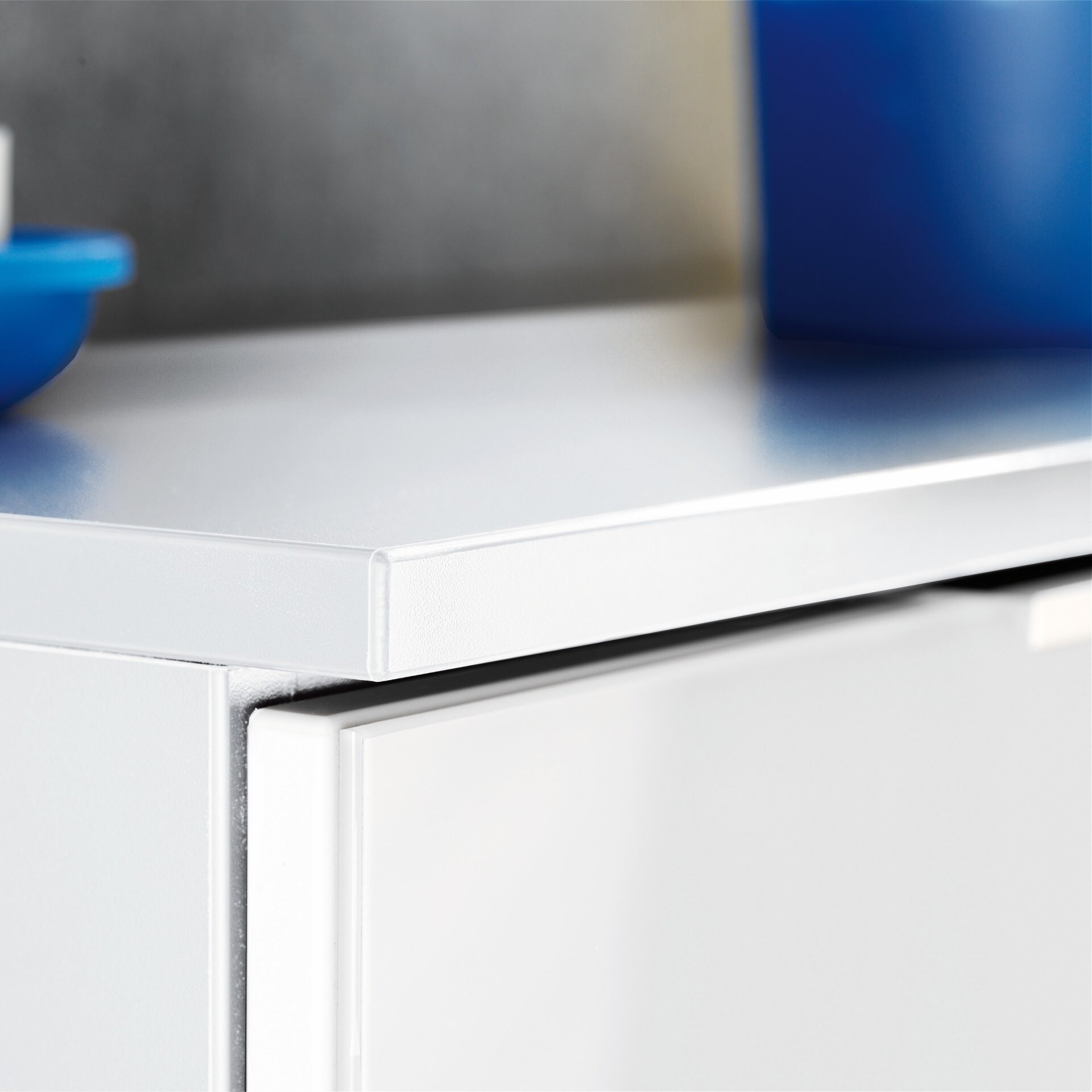 - Farbe: Korpus Weiß matt, Front lackiertes Glas Weiß