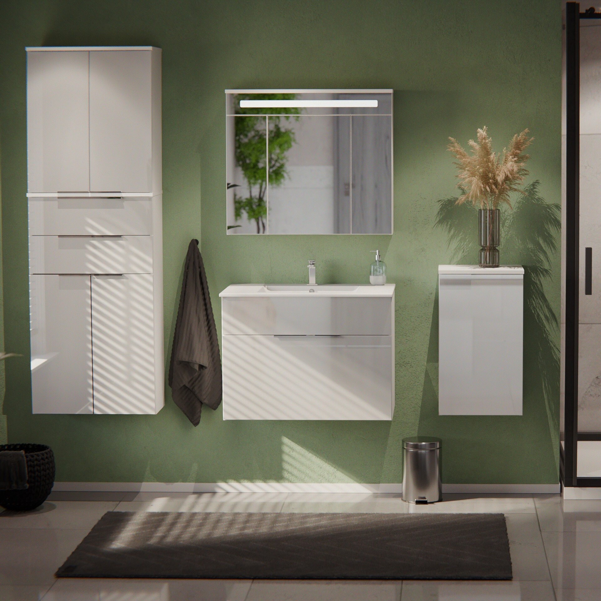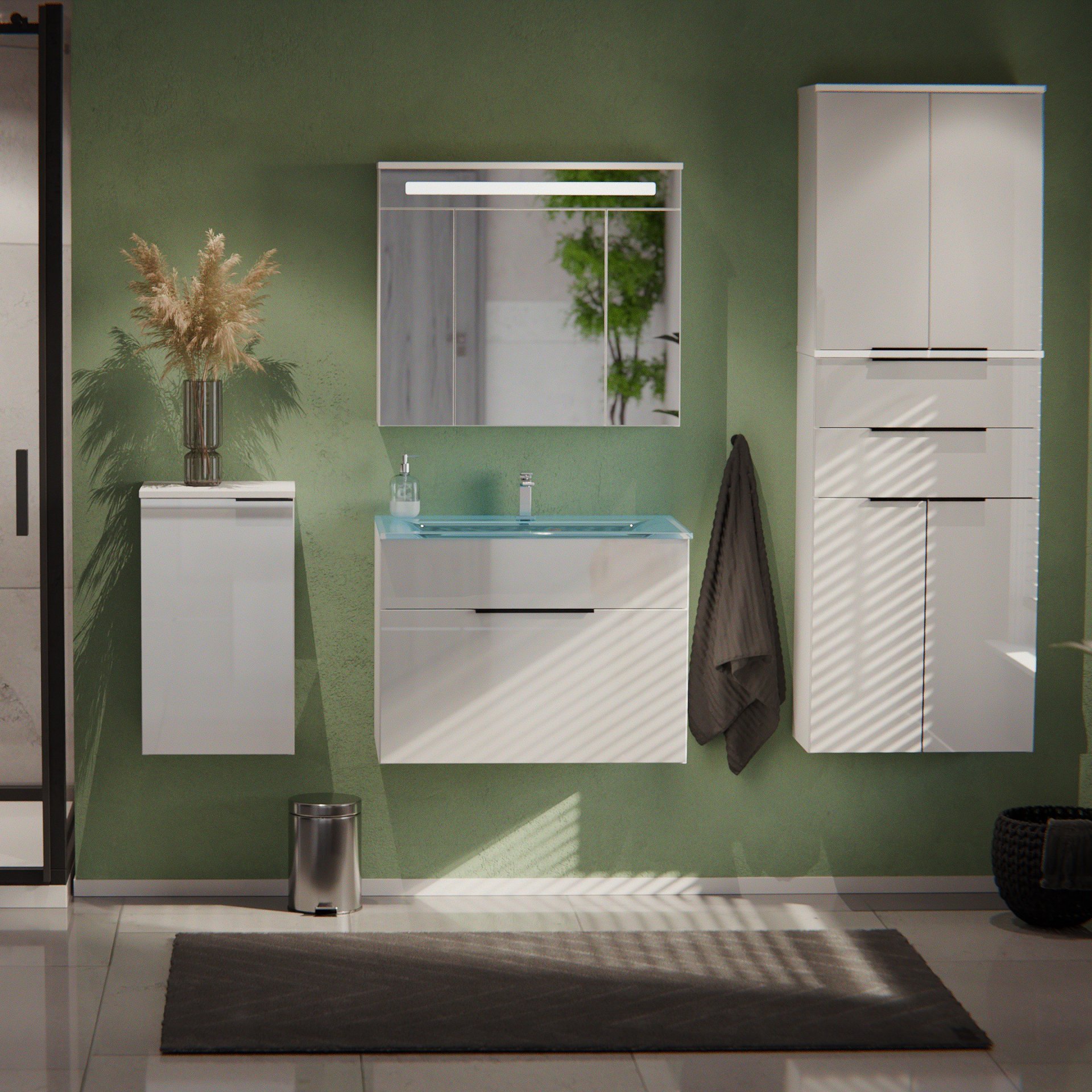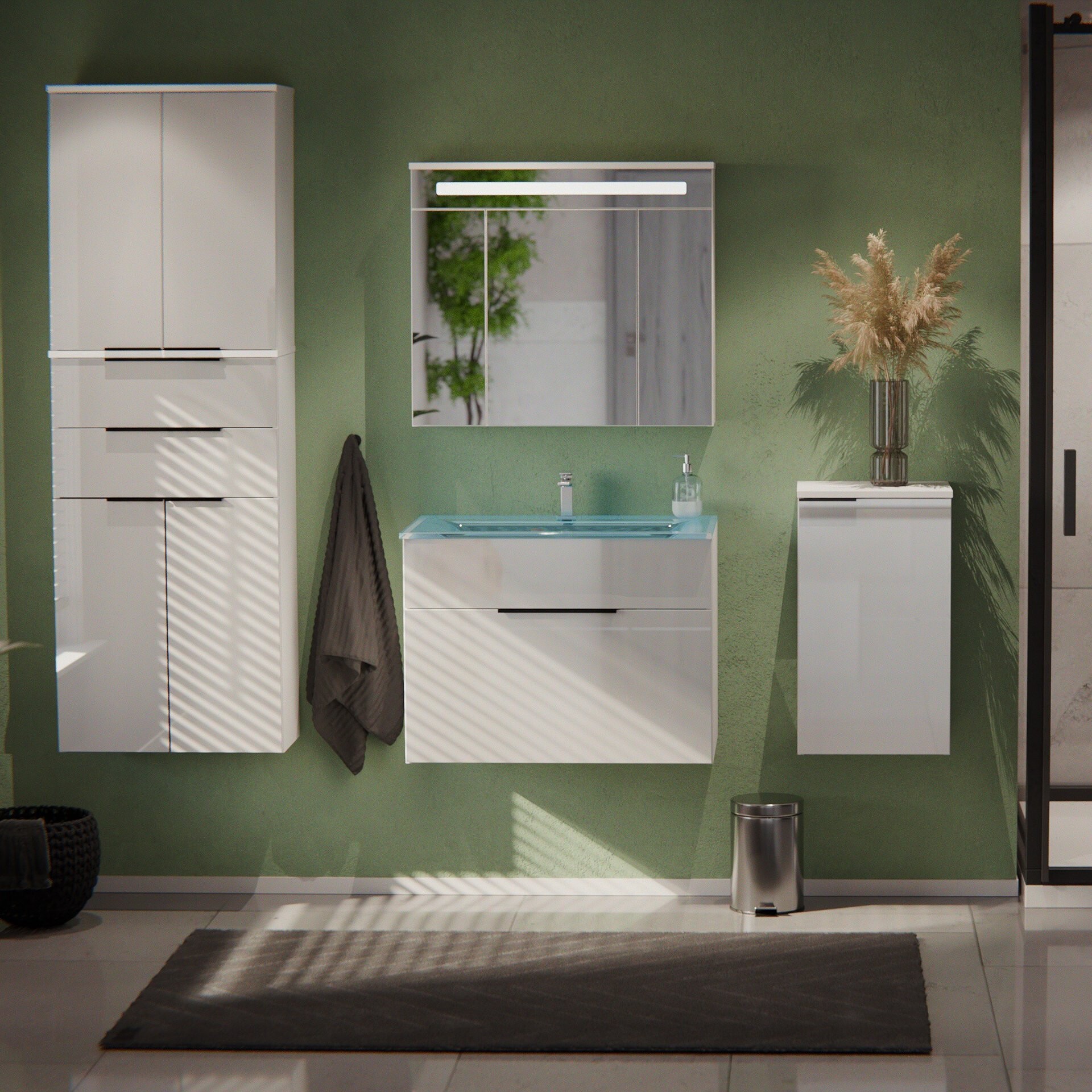 Schöner und wertiger Schrank. Habe gleich 3 gekauft und einen "Hochschrank" daraus gebaut. Tolle Lösung. Beim Transport ist leider die Glasfront etwas beschädigt worden. Kein Problem, Anruf bei BadeDu und eine neue Tür wurde schnell geliefert. Komplett problemloses Handling.