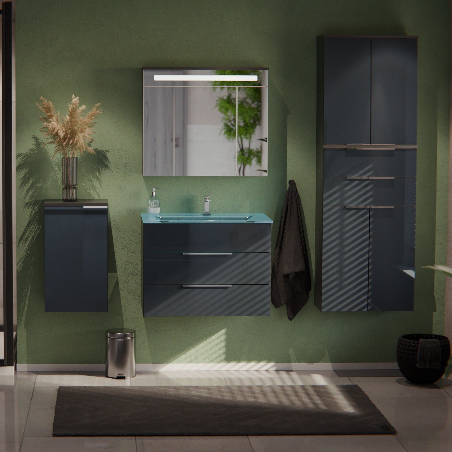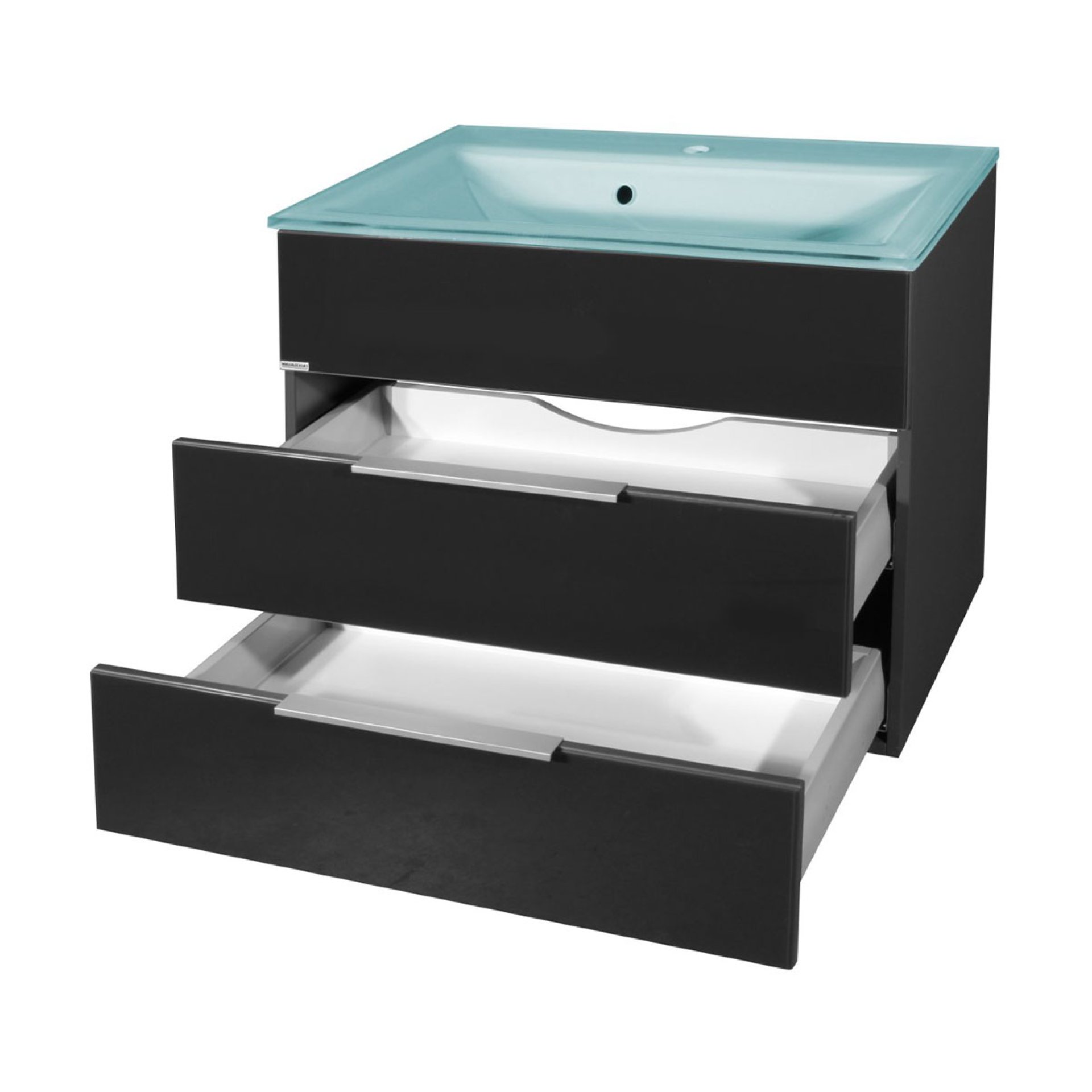 Fackelmann KARA Waschbecken mit Unterschrank 80 cm breit, Anthrazit, Waschbecken Glas Mint, 2 Schubladen