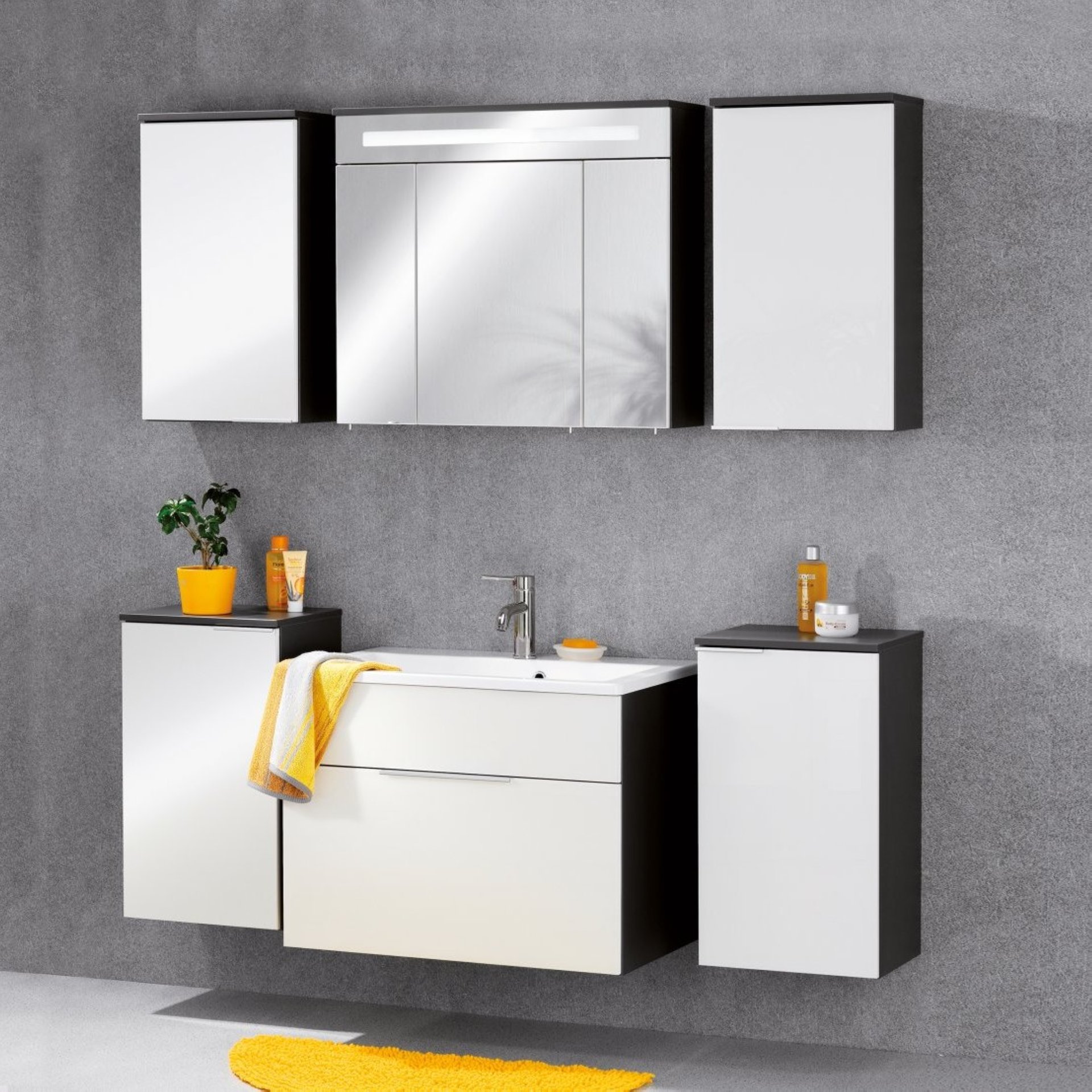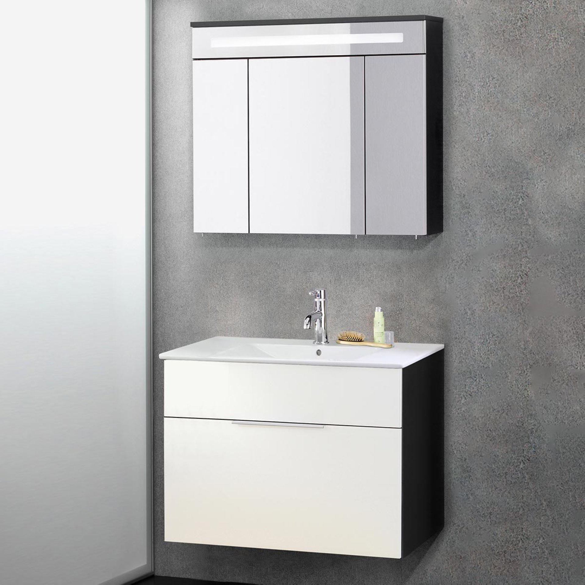 Super!! Fackelmann KARA Badmöbel Set 3-teilig, 80 cm, Anthrazit/Weiß, Keramik, 1 Schublade