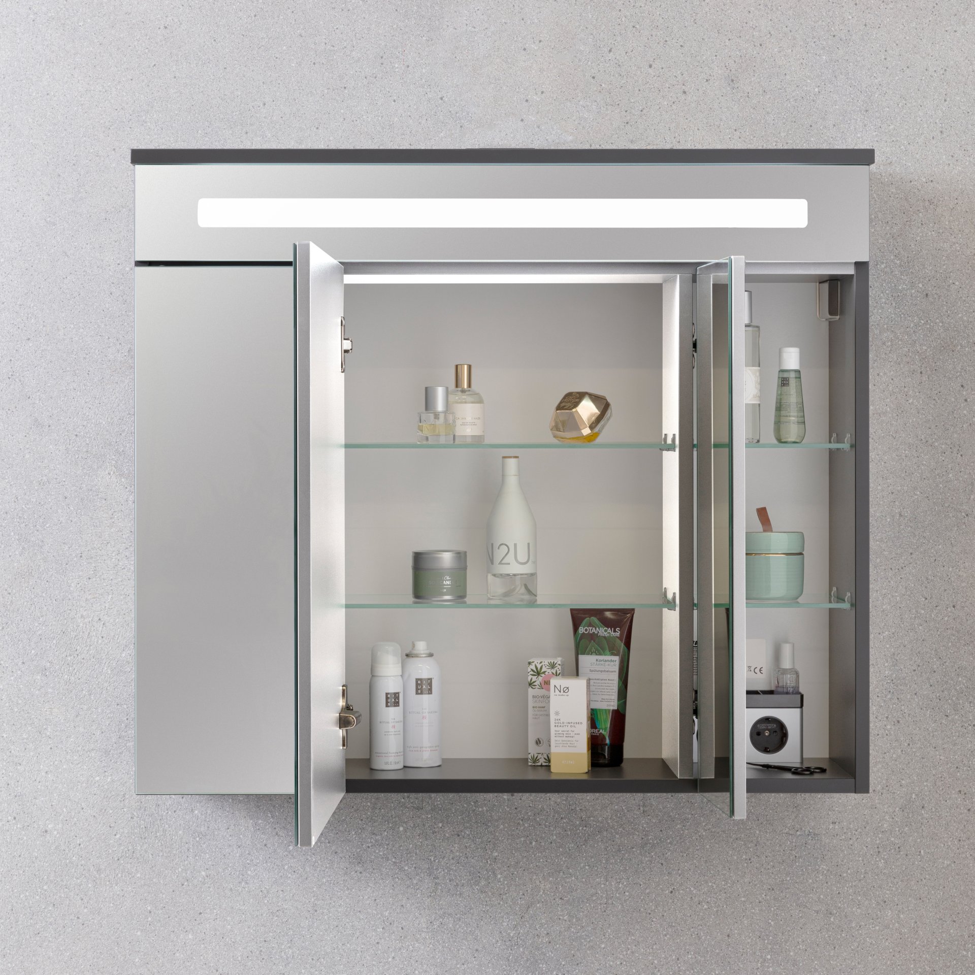 - Besonderheit: Leuchtmittel austauschbar, bei geöffneter rechter und linker Spiegeltür 3D-Effekt