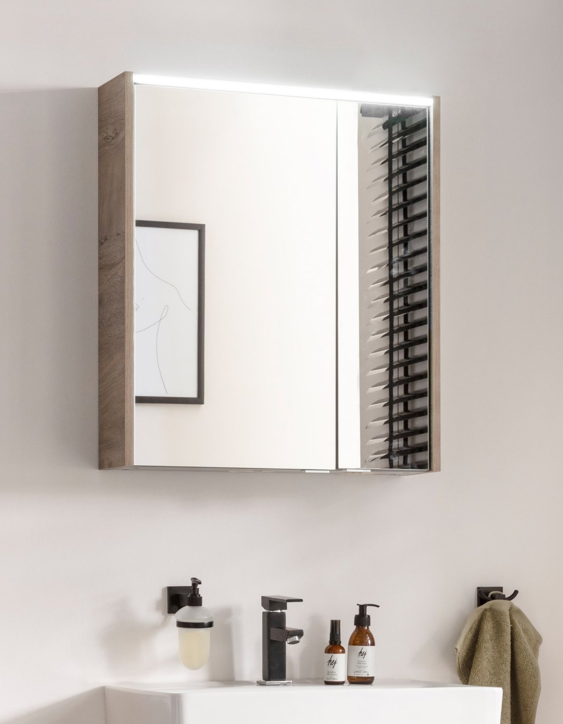 Fackelmann LED Spiegelschrank DV 60 cm breit, Braun hell