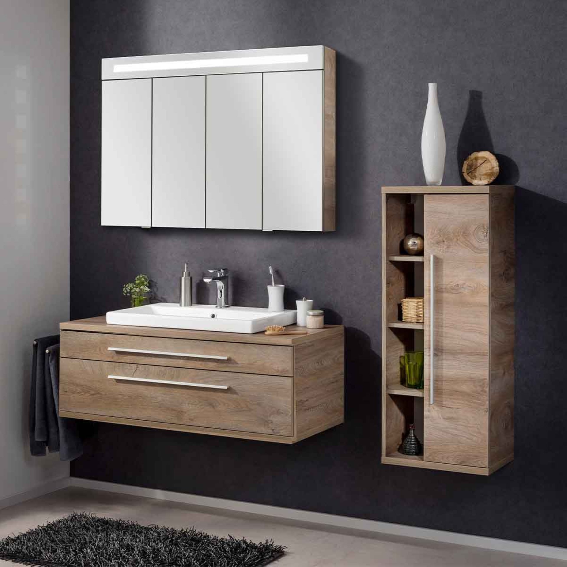 Dieser moderne LED-Spiegelschrank von Fackelmann ist mit vier Spiegeltüren und einer innovativen Falttürentechnik ausgestattet. Der dadurch erzeugte 3D-Effekt gestattet ein Rundum-Styling. Und das bei vollem Zugriff auf den Schrankinhalt. Ein weiterer Bonus der Falttürentechnik ist die damit einhergehende platzsparende Türöffnung. Ausreichend Licht ins Bad und auf die Spiegelfläche bringt die energiesparende LED Beleuchtung mit 840 Lumen. Die LED Beleuchtung ist austauschbar. Der Korpus ist in einem hellen Braun, in der Optik Nature Oak, gehalten. Mit seinen vier Glaseinlegeböden bietet er ausreichend Stauraum für Kosmetikartikel und andere Badaccessoires. Die Türen haben gedämpfte Scharniere. Diese gestatten ein sanftes Öffnen und Schließen. Badmöbel von Fackelmann werden mit viel Liebe zum Detail in Deutschland gefertigt. Im Fackelmann LED Spiegelschrank TWINDY 110 cm, Braun hell, Falttüren findest Du einen Schalter und eine Steckdose für den Anschluss Deiner elektrischen Geräte in Griffnähe.
