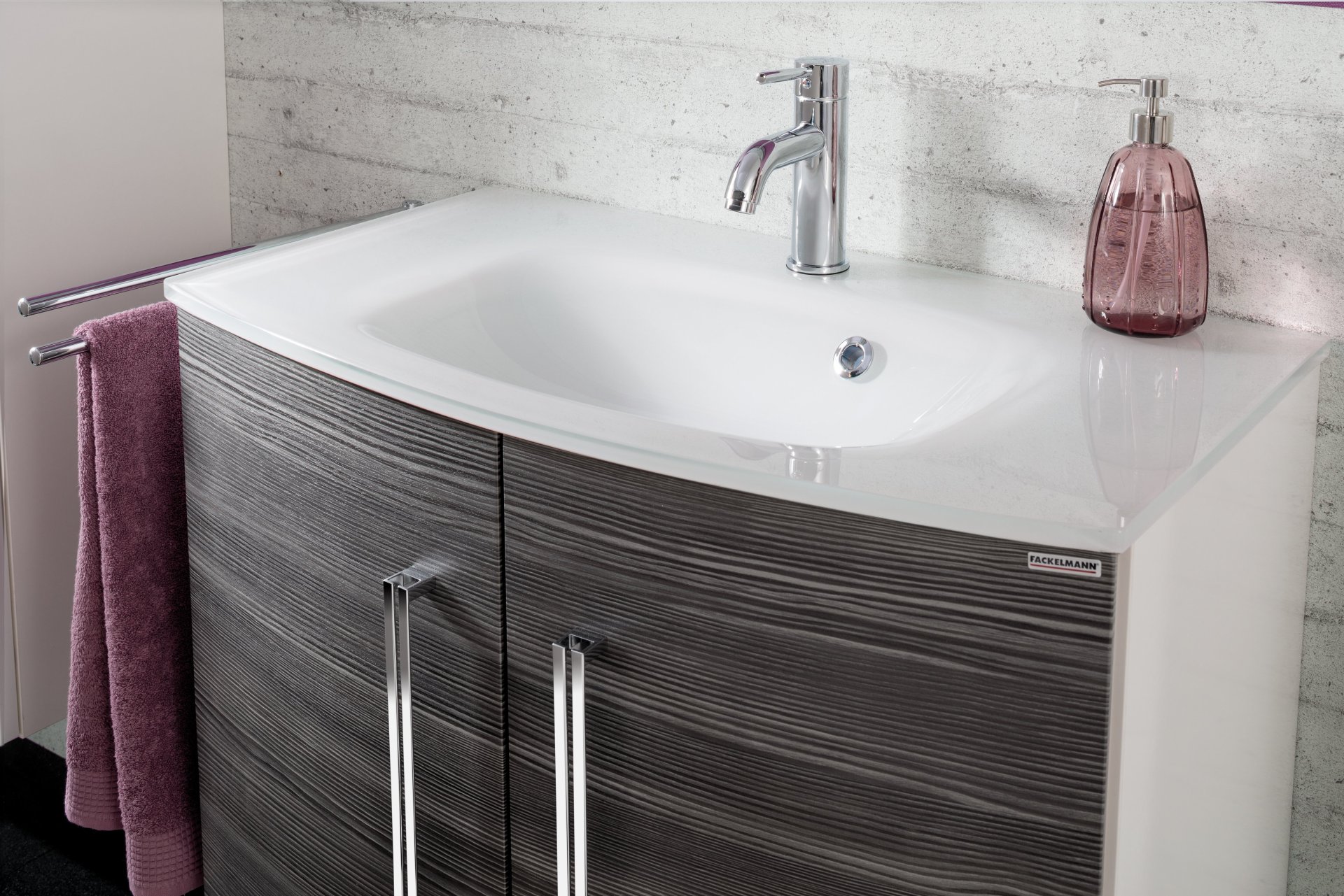Der Glas-Waschtisch aus der Serie VERONA von Fackelmann mit einer Breite von 80,5 cm besticht durch seine geschwungene Formensprache und sein exklusives Design. Ein Blickfang in jedem Badezimmer! Das formvollendete Glasbecken in Weiß ist besonders leicht zu reinigen, wirkt edel und ist ein wahres Designobjekt für Dein Bad. Zu dem Waschbecken passen optimal die Waschtischunterschränke aus der Serie VERONA in den Farbvarianten Weiß-Hochglanz und Nussbaum. Das Waschbecken ist auch als Gussmarmorbecken (Art.Nr. 73600) erhältlich.