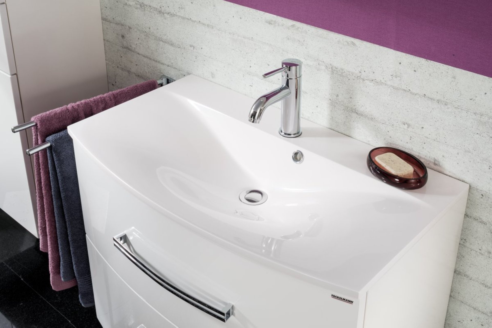 Der Fackelmann Waschtisch aus der Serie VERONA mit einer Breite von 80,5 cm besticht durch seine tiefe Mulde und sein exklusives Design. So ist er der Hingucker in jedem Badezimmer! Das formvollendete Gussbecken in Weiß besitzt eine porenfreie pflegeleichte Oberfläche, es ist leicht und lässt sich fugenlos verarbeiten. Zu dem Waschbecken passen optimal die Waschtischunterschränke mit einer Breite 80 cm aus der Serie VERONA in den Farbvarianten Weiß-Hochglanz (Art.Nr. 73103) und Nussbaum (Art.Nr. 73101). Das Fackelmann VERONA Waschbecken 80,5 cm Gussmarmor (Art.Nr. 73609) ist auch als Glasbecken erhältlich.