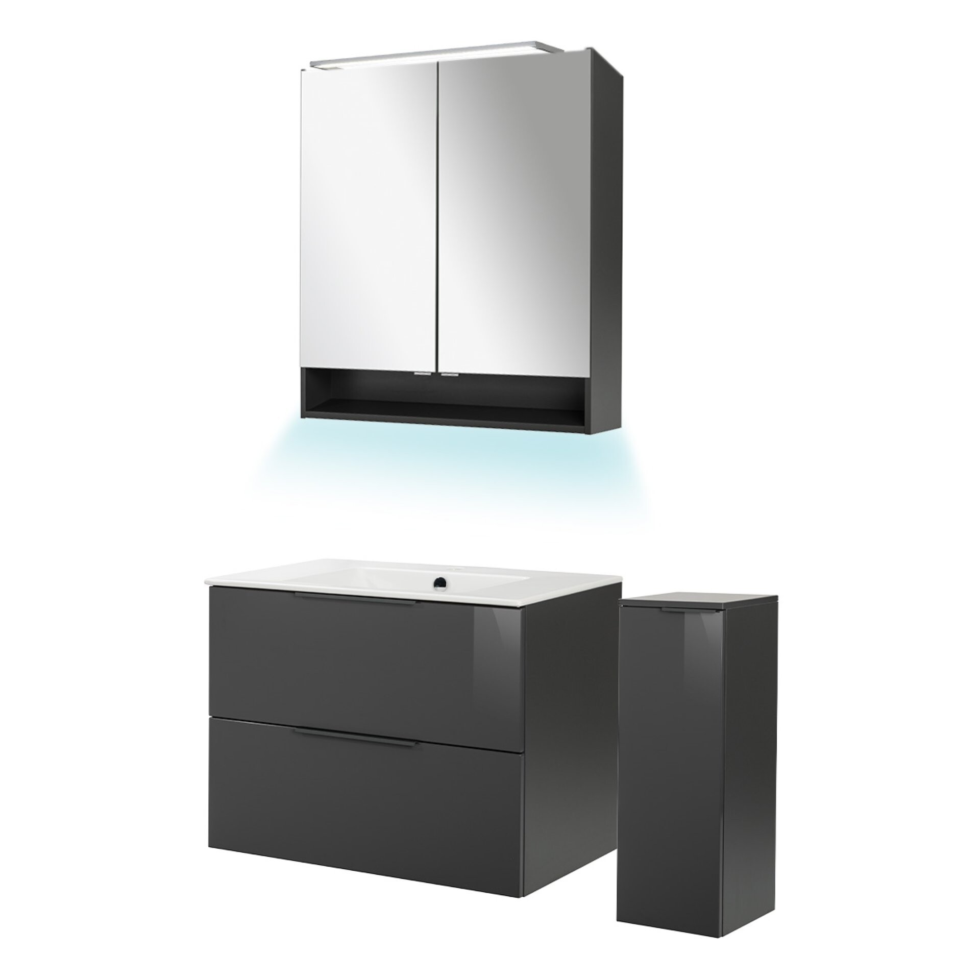 Fackelmann LUNA Badmöbel Set 5-teilig 80 cm breit, Anthrazit, Keramik+Spiegelschrank+Midischrank