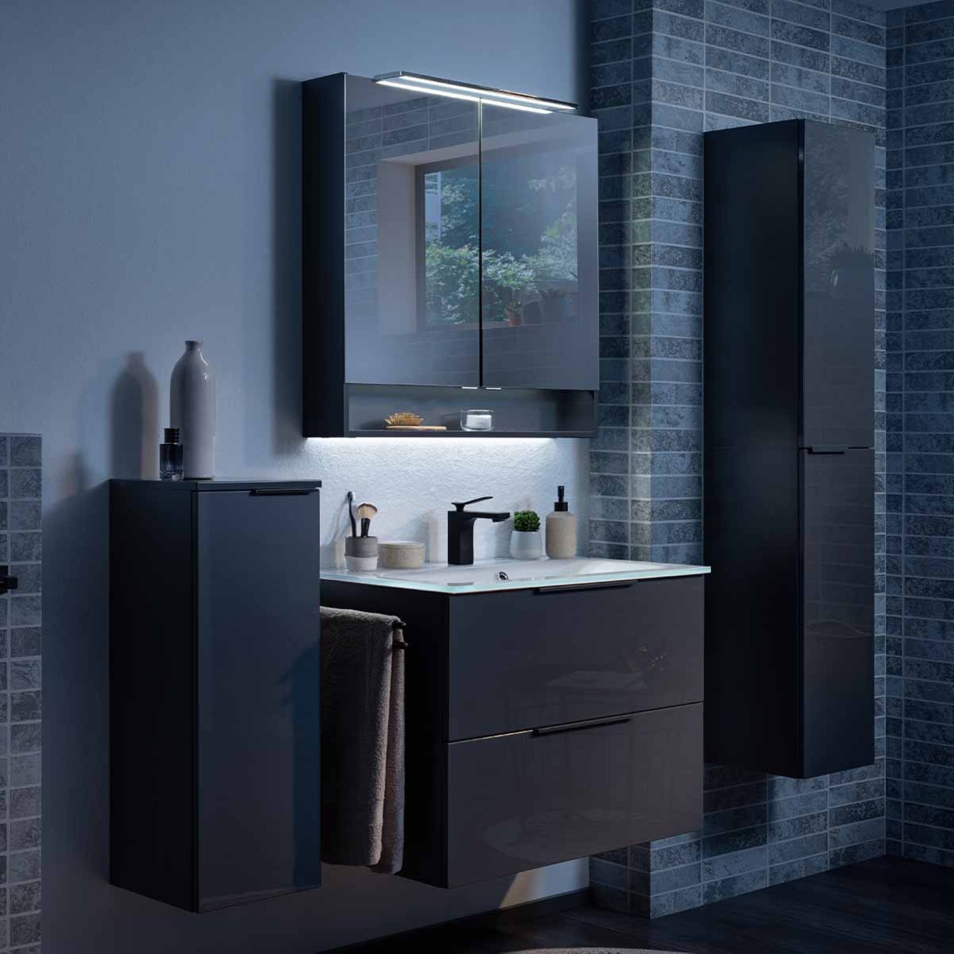 Einen exklusiven Lichteffekt erzeugt die LED Ambiente Beleuchtung für den Fackelmann Spiegelschrank (Art.Nr. 87218) aus der Serie LUNA. Die zusätzliche Fackelmann LUNA LED Beleuchtung für Spiegelschrank 80 cm ist einfach in der unteren Ablage des Spiegelschranks einzubauen und illuminiert das Badezimmer mit Spiegelschrank. Ein Blickfang der Extraklasse.