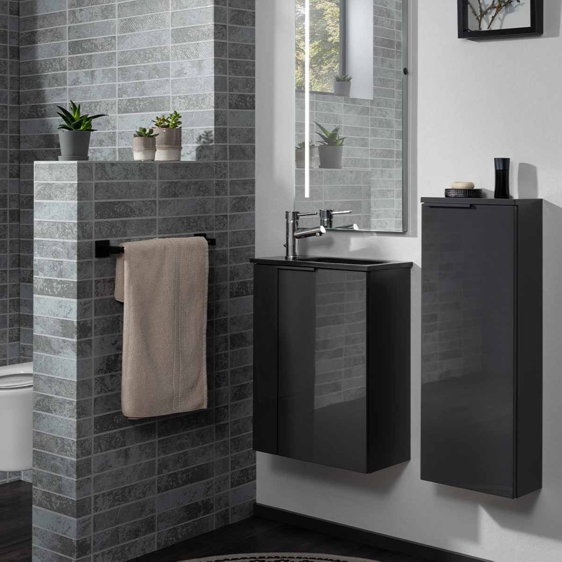 Fackelmann LUNA Midischrank slim 31 cm breit, Schwarz/Anthrazit