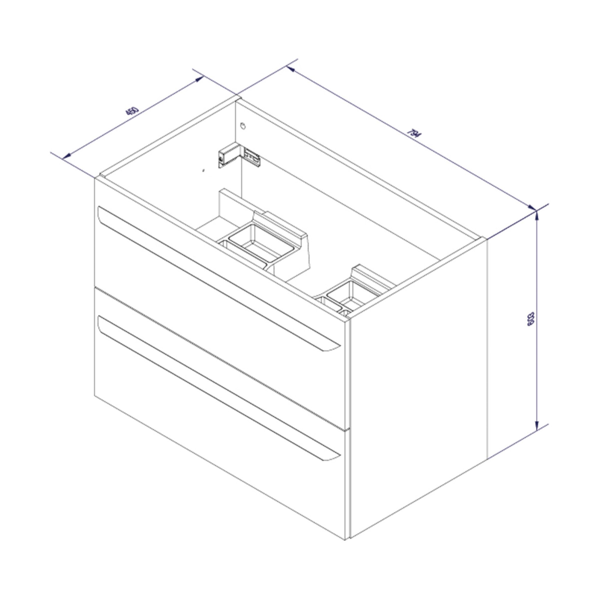 - Ausstattung: 2 Schubladen, 2 Griffe Chrom glänzend, Schubladeninnenleben silbergrau