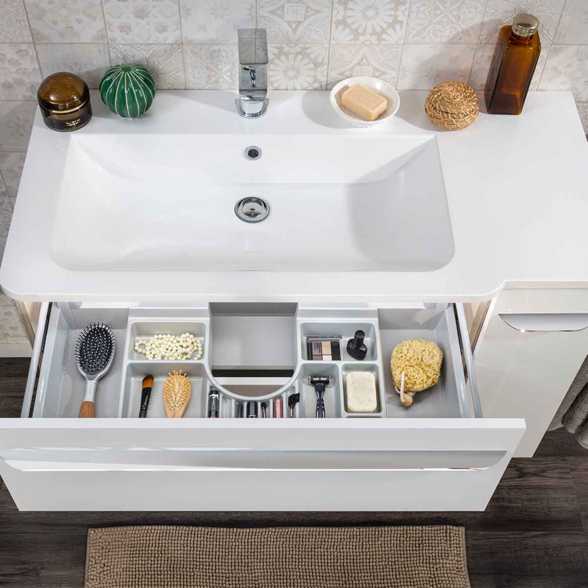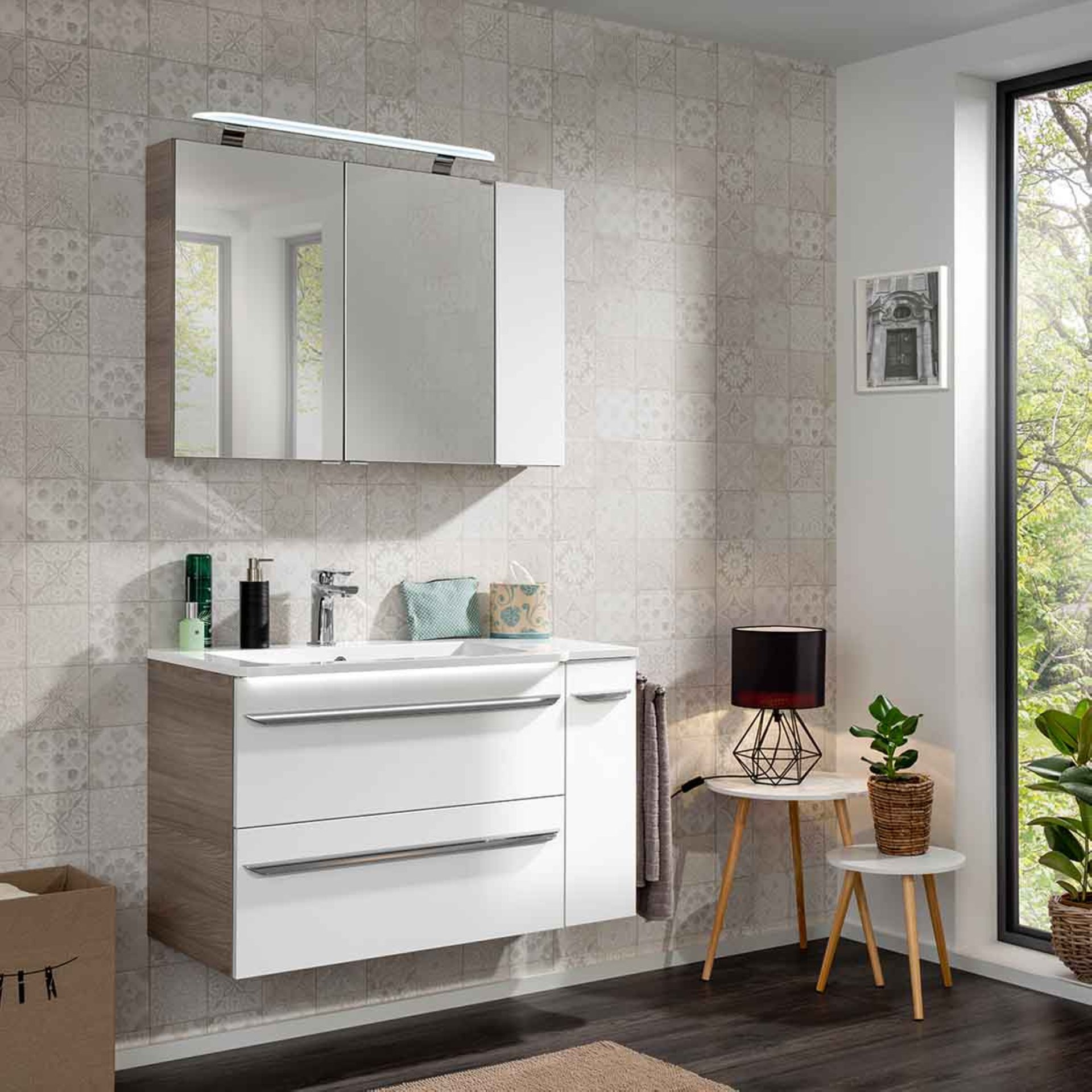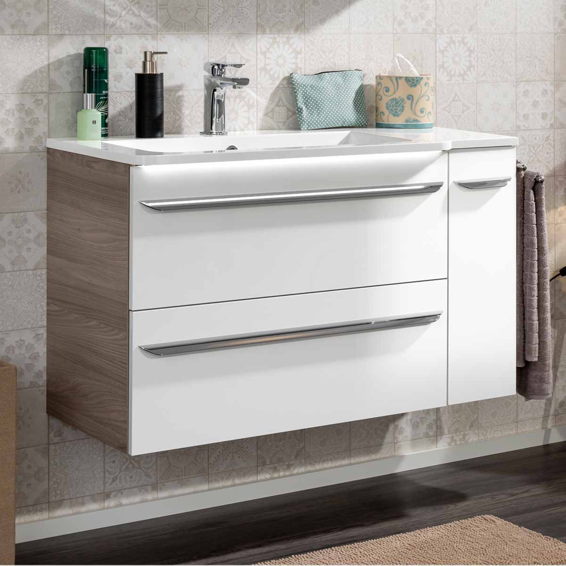 Fackelmann LUXOR Badmöbel Set 3-teilig 100 cm, Braun/Weiß + Unterschrank links