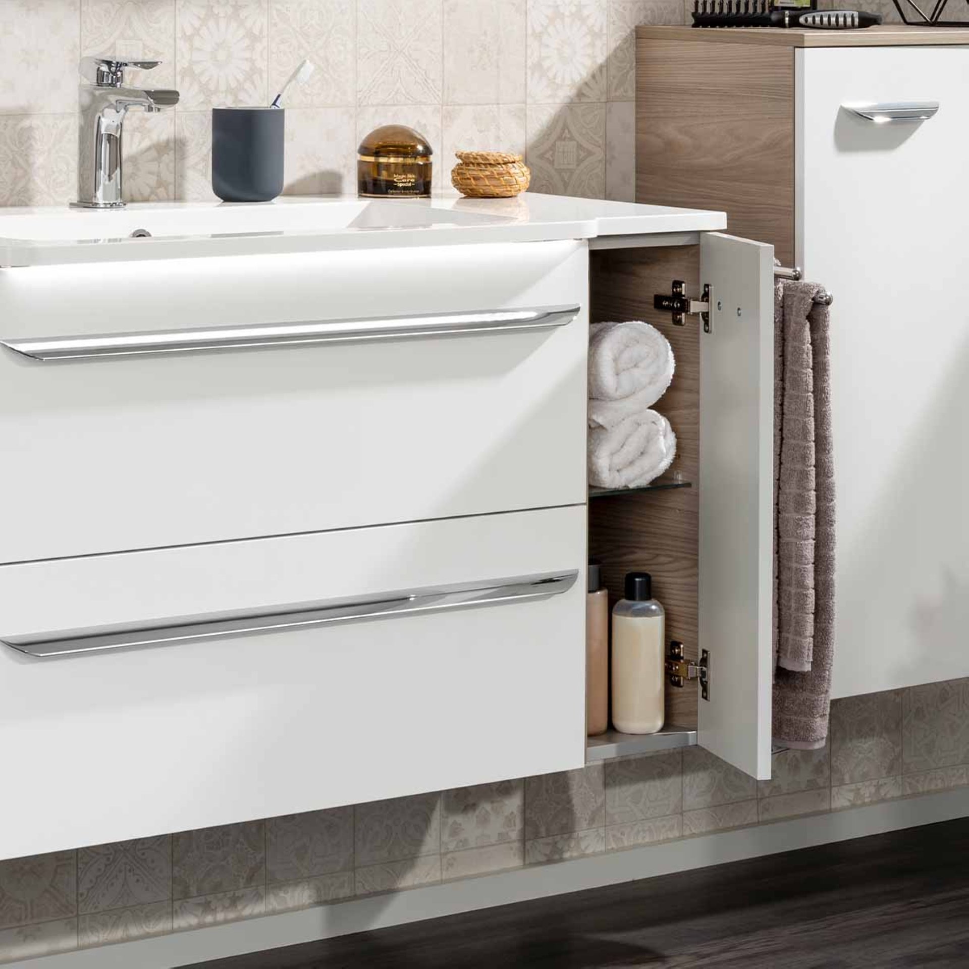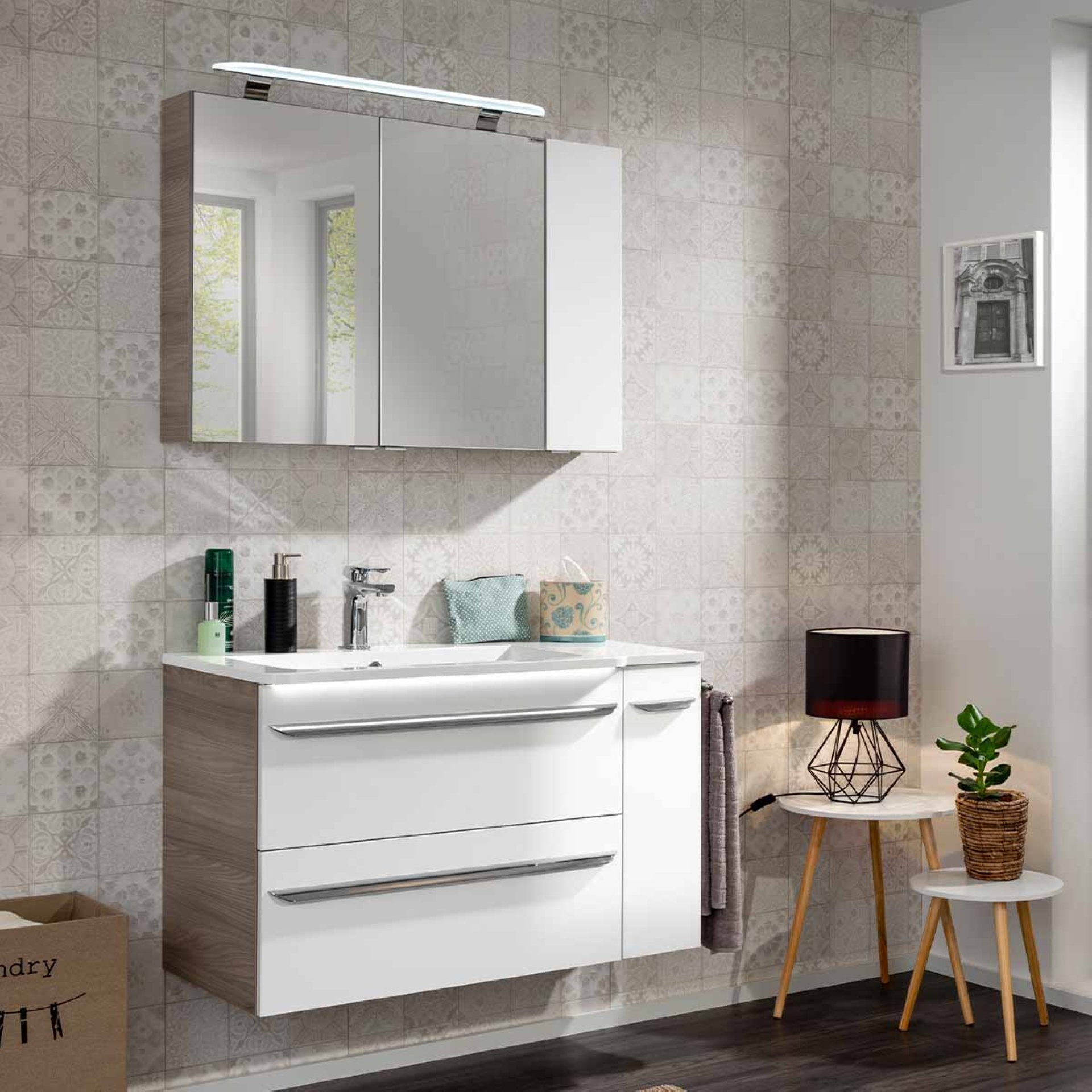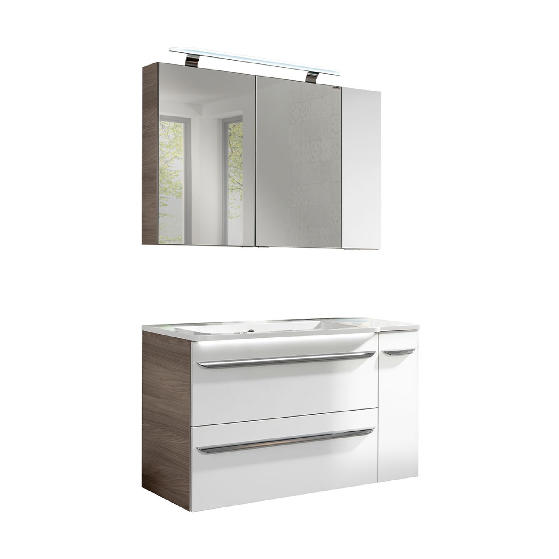 Fackelmann LUXOR Badmöbel Set 5-teilig 100 cm, Braun/Weiß + LED-Spiegelschrank + Badschränke rechts