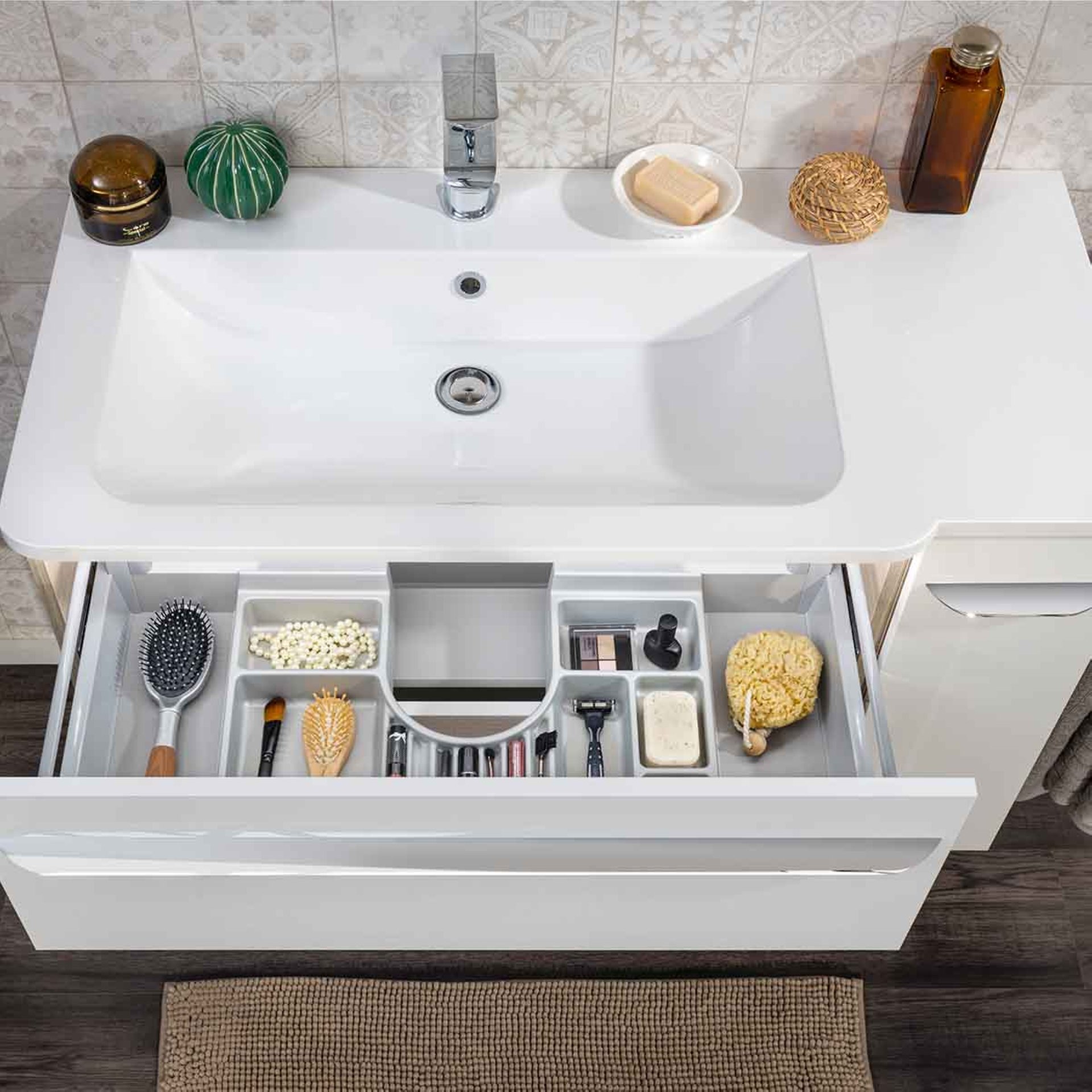 - Ausstattung: 2 Schubladen, 1 Organisations-Set, Schubladeninnenleben silbergrau