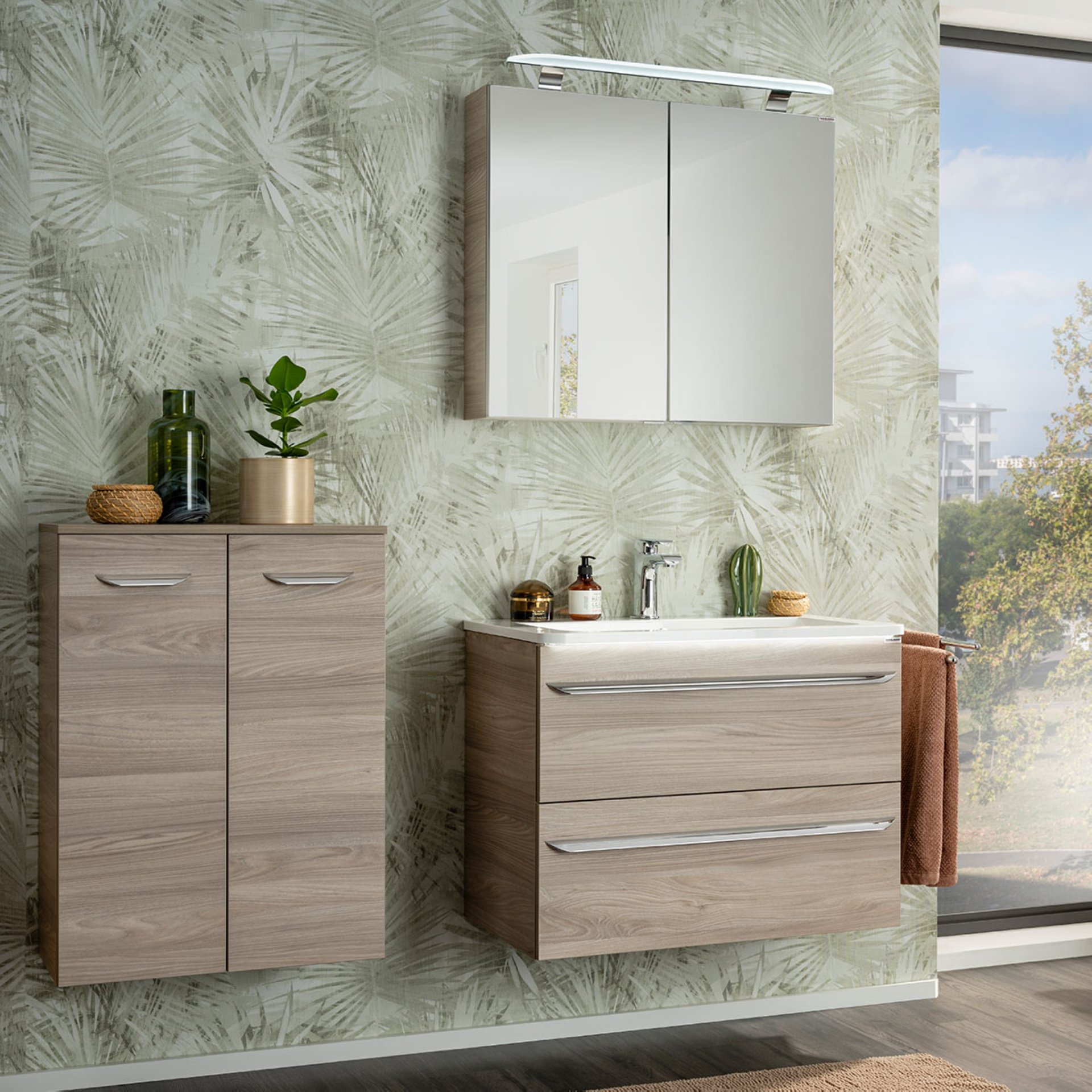 Mit seinen hellbraunen Dekor und der Holzoptik, im Design der Steinesche nachempfunden, verleiht der Doppel-Midischrank von Fackelmann aus der Serie LUXOR Deiner Badeinrichtung einen natürlichen Touch. Ausgestattet mit zwei Türen und der Soft-Close Funktion für sanftes Schließen, bietet der 60 cm breite Schrank eine clever Aufteilung im Innenraum. So sind alle Deine Badaccessoires immer griffbereit. Mit geräumigen Stauraum und natürlicher Optik bereichert der Badschrank Dein Badambiente auf attraktive Weise. Überzeuge Dich von dem flexiblen Ausbau- und Kombinationskonzept der Serie LUXOR. Hervorragend lässt sich im Inneren des Doppel-Midischranks die faltbare Fackelmann Wäschebox in Leinenoptik (Art.Nr. 84619) verstauen. Eine praktische Ergänzung und im BadeDu Onlineshop erhältlich. Badmöbel von Fackelmann werden mit viel Liebe zum Detail in Deutschland hergestellt. Der Fackelmann LUXOR Doppel Midischrank 60,5 cm, Braun hell wird vormontiert geliefert und ist damit schnell in Dein Bad integriert.