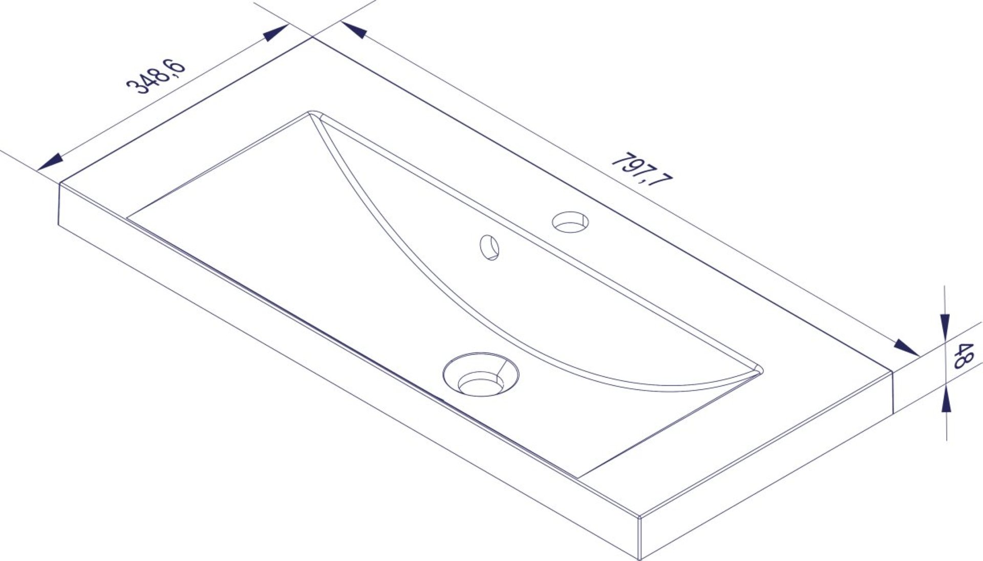 - Maße: 80 cm Breite, 14 cm Höhe und 35 cm Tiefe, Stärke Material 5 cm