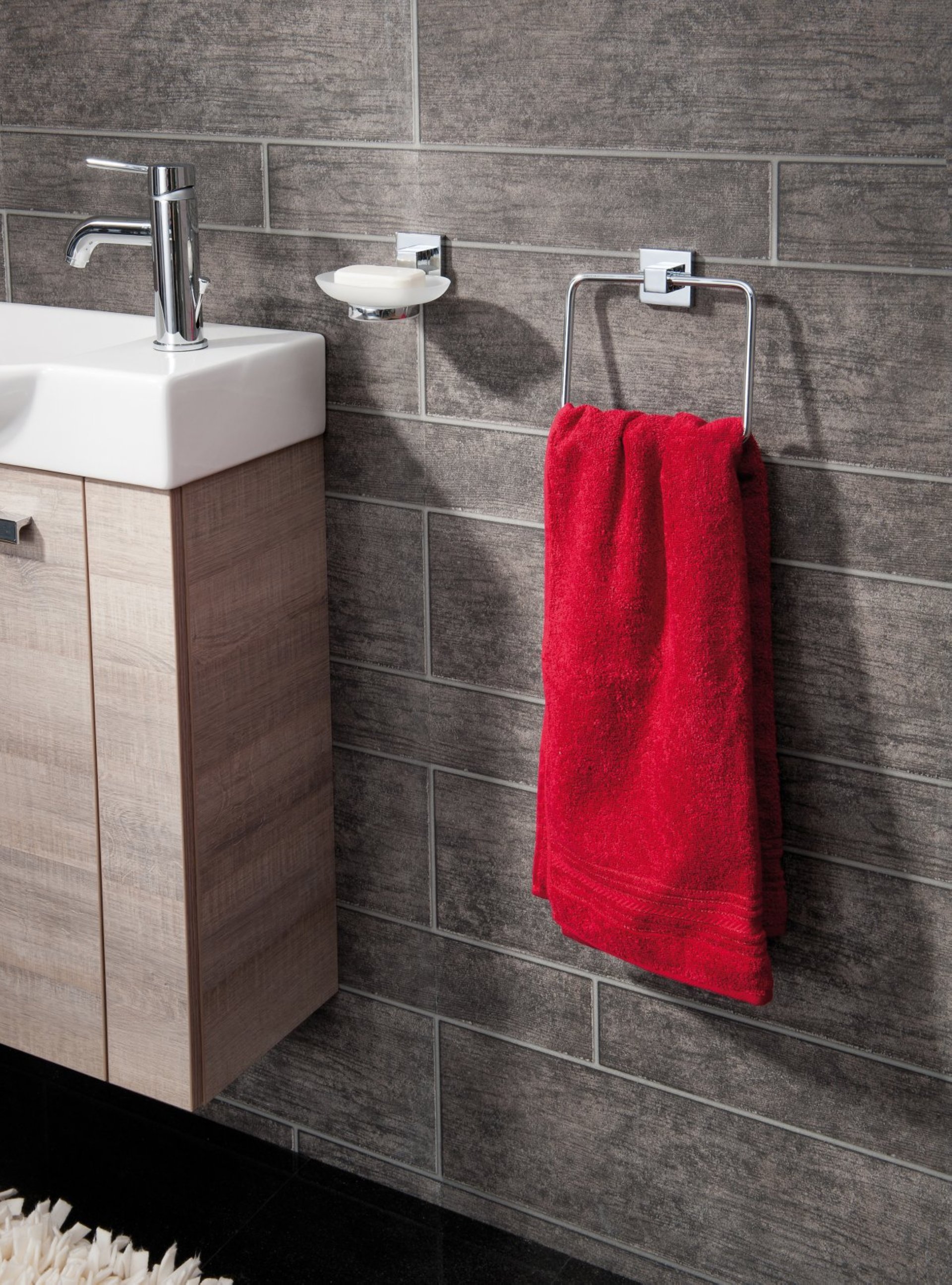 Die Symmetrie des Quadrats erzeugt in Deinem Badezimmer ein ausgewogenes Raumgefühl. Verbunden mit der verchromten Oberfläche der Badaccessoires aus der Serie MARE von Fackelmann entsteht so ein Bild das Modernität, Ordnung und Eleganz harmonisch miteinander verbindet. Die quadratische verchromte Wandbefestigung sorgt für Stabilität. Mit dem Handtuchhalter aus der Serie MARE von Fackelmann ist Dein Handtuch immer griffbereit. Durch die leicht bewegliche Ablage des modernen Handtuchhalters kannst Du Dein Handtuch schnell aufhängen. Kinderleicht gestaltet sich die Montage. Entweder mit dem integriertem Befestigungsmaterial durch Bohren an der Wand befestigen oder mit dem Superkleber von Fackelmann (Art.Nr. 86777) an glatte, saubere Oberflächen in Deinem Bad kleben. Der Kleber ist rückstandslos entfernbar. Genieße in Deinem Badezimmer mit dem Fackelmann MARE Handtuchhalter, Chrom glänzend die schlichte Geometrie und den modernen, zeitlosen Stil.