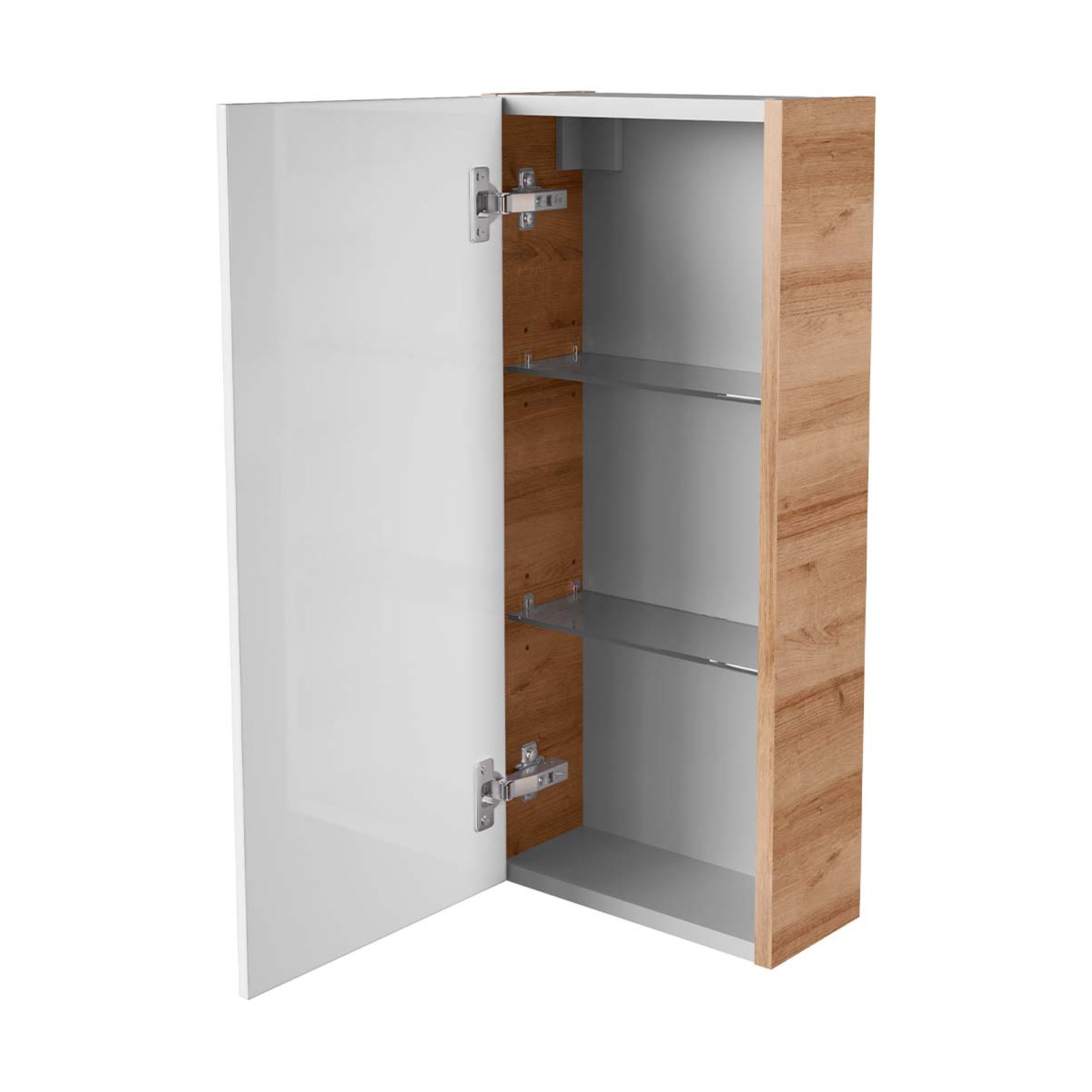 - Besonderheit: Querteile und Rückwand silbergrau, Türanschlag frei wählbar