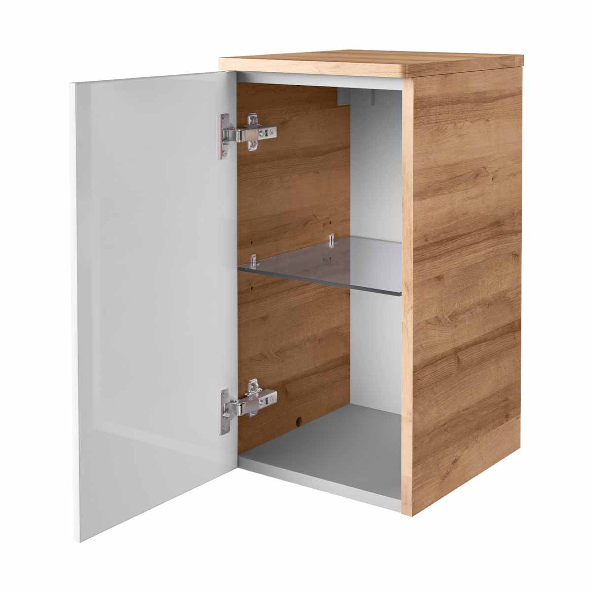 - Ausstattung: 1 Tür, 1 Glaseinlegeboden