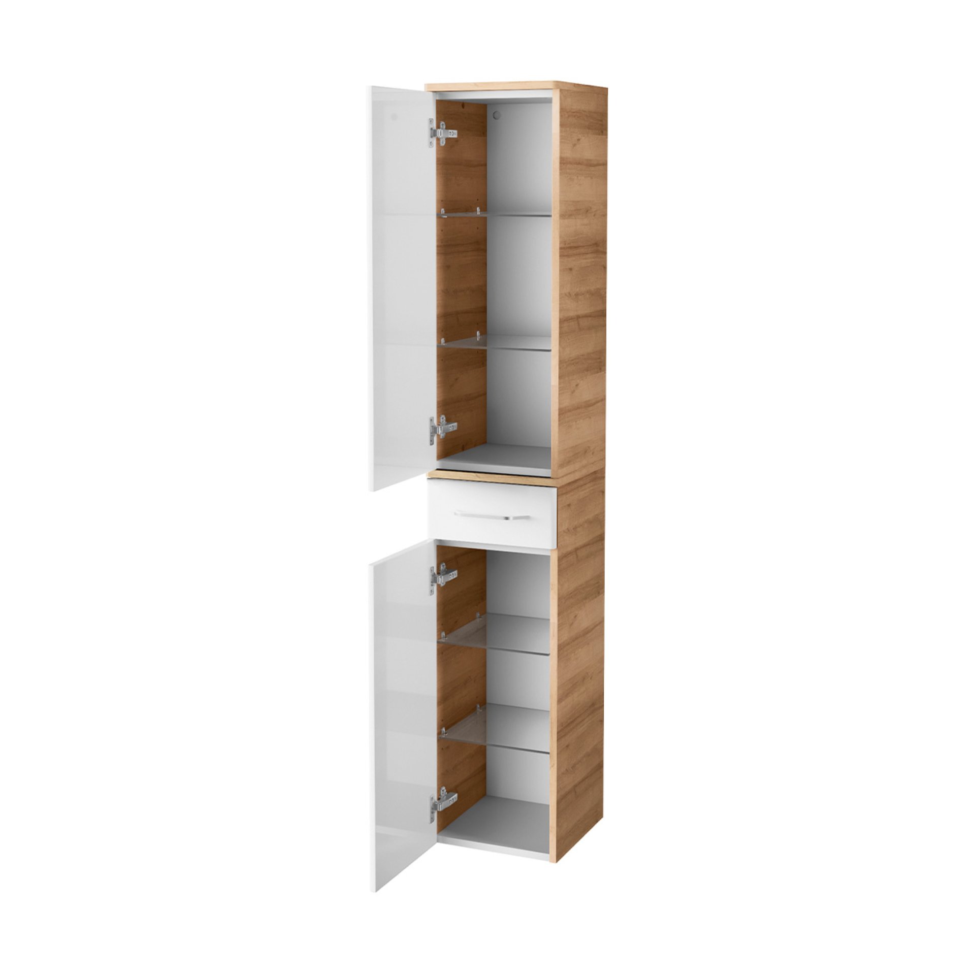 - Farbe/Design: Korpus Braun hell, Front Weiß Hochglanz/Asteiche, Weiß