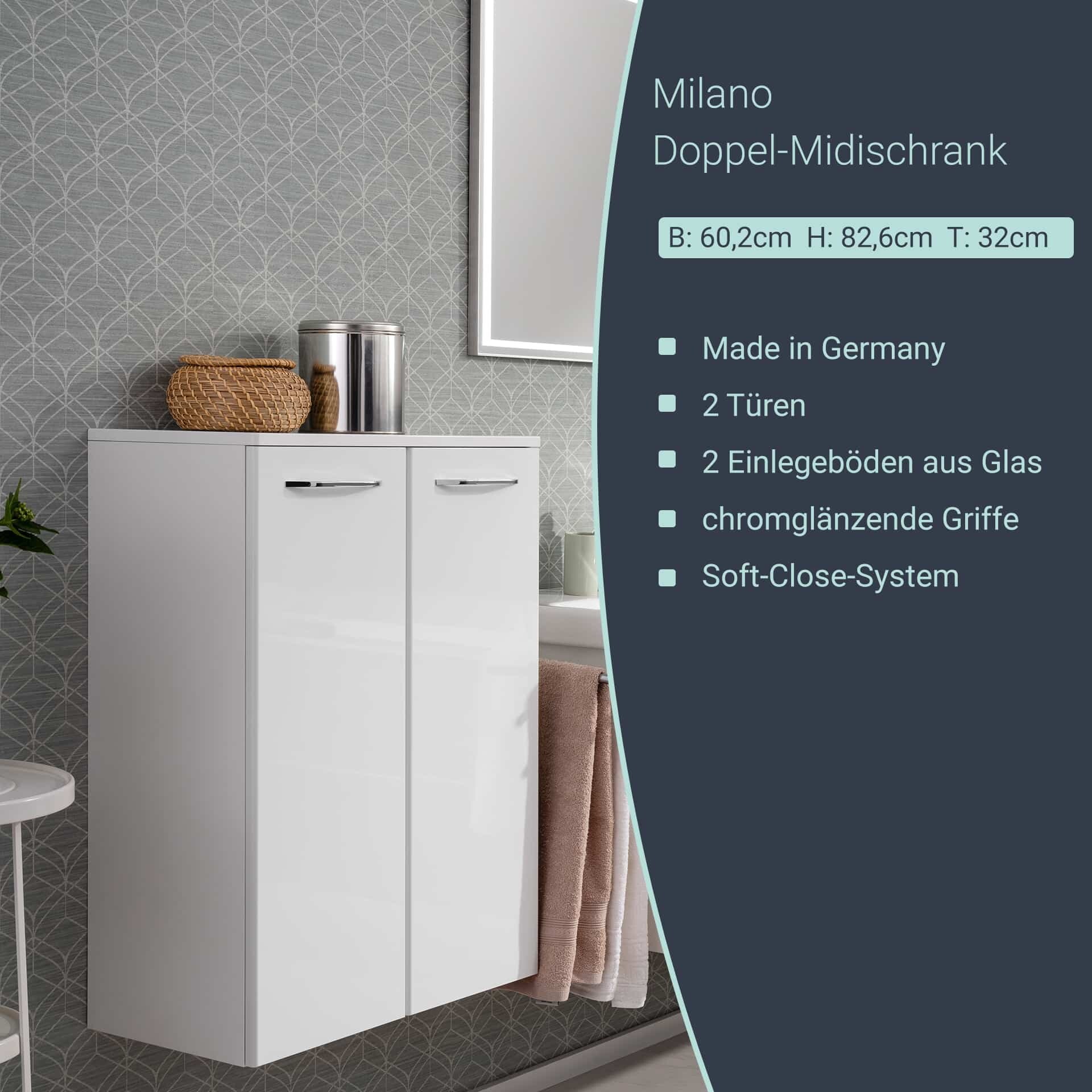 Fackelmann MILANO Doppel Midischrank 60 cm, Weiß