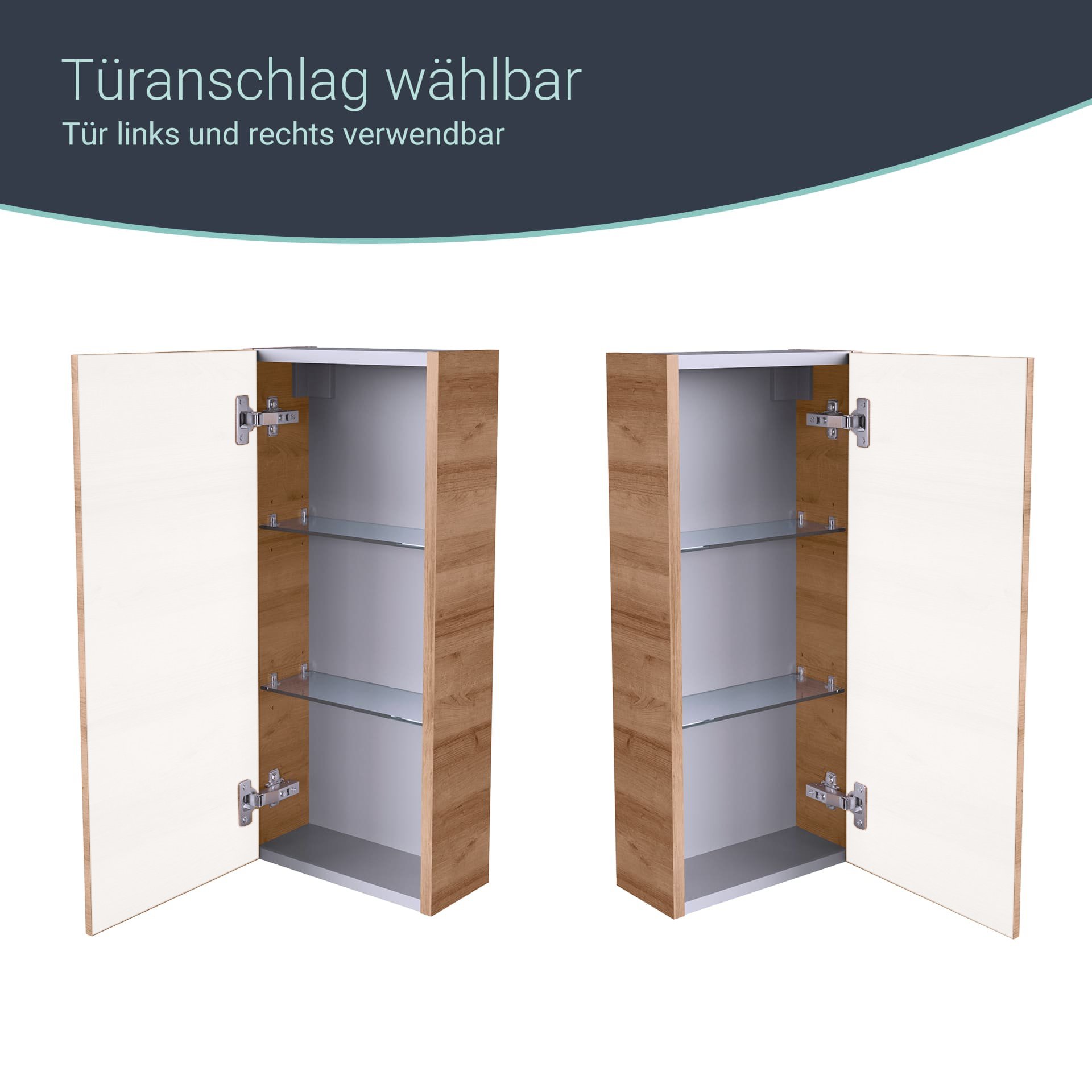 - Besonderheit: Querteile und Rückwand silbergrau, frei wählbarer Türanschlag