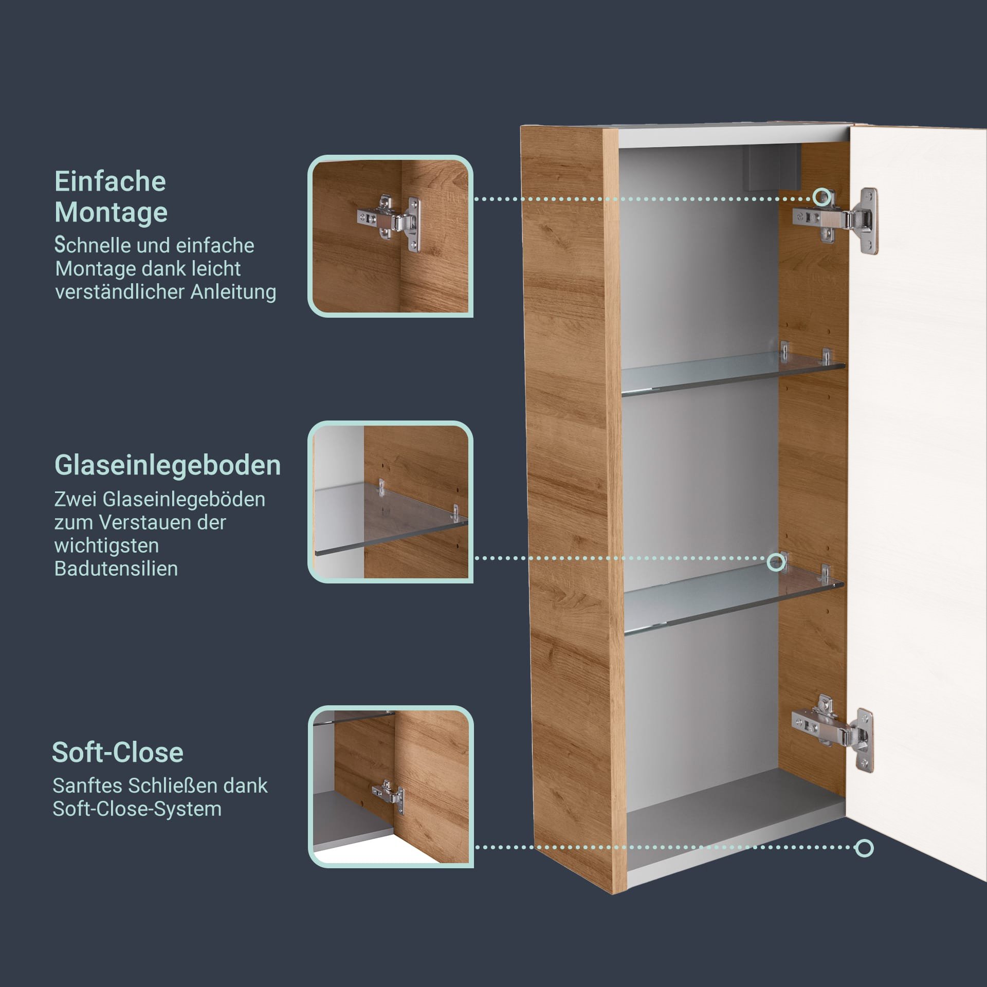- Maße: 30 cm Breite, 68 cm Höhe und 15 cm Tiefe