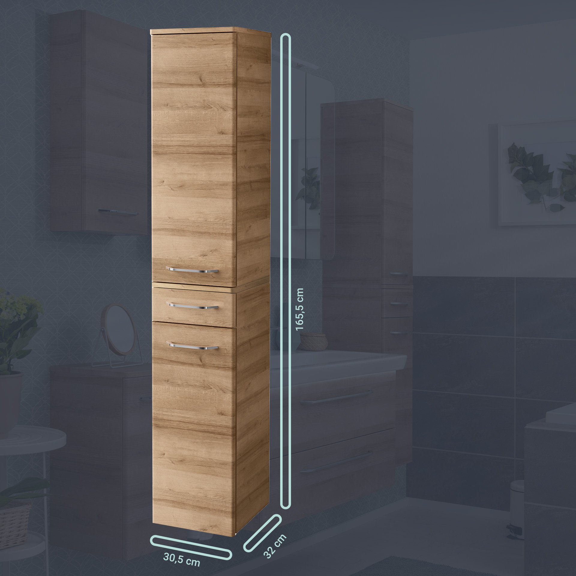 - Maße: 30,5 cm Breite, 165,5 cm Höhe und 32 cm Tiefe