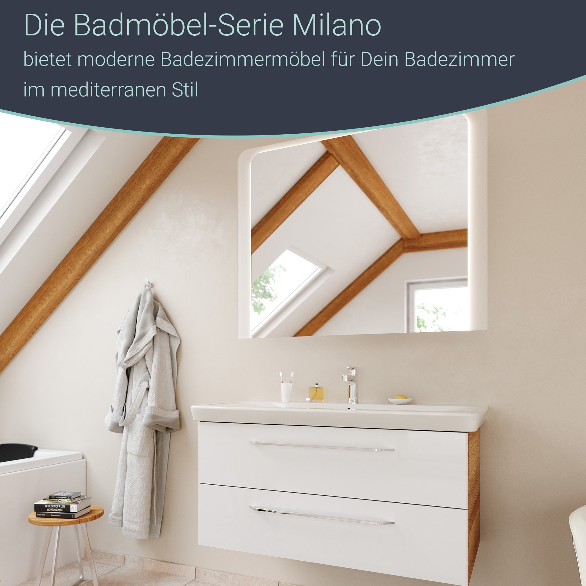 Der Spiegel mit 100 cm Breite bildet eine Ergänzung zur neuen Badmöbel-Serie MILANO von Fackelmann. Der Wandspiegel zeichnet sich durch seine umlaufende und austauschbare LED-Beleuchtung aus. Die Design-Satinierung auf der linken, rechten und oberen Seite macht den LED-Spiegel zum Blickfang in jedem Badezimmer. Durch sein neutrales Design lässt sich der Fackelmann MILANO LED Spiegel 100 cm hervorragend mit allen bestehenden Fackelmann Badmöbel-Serien kombinieren.